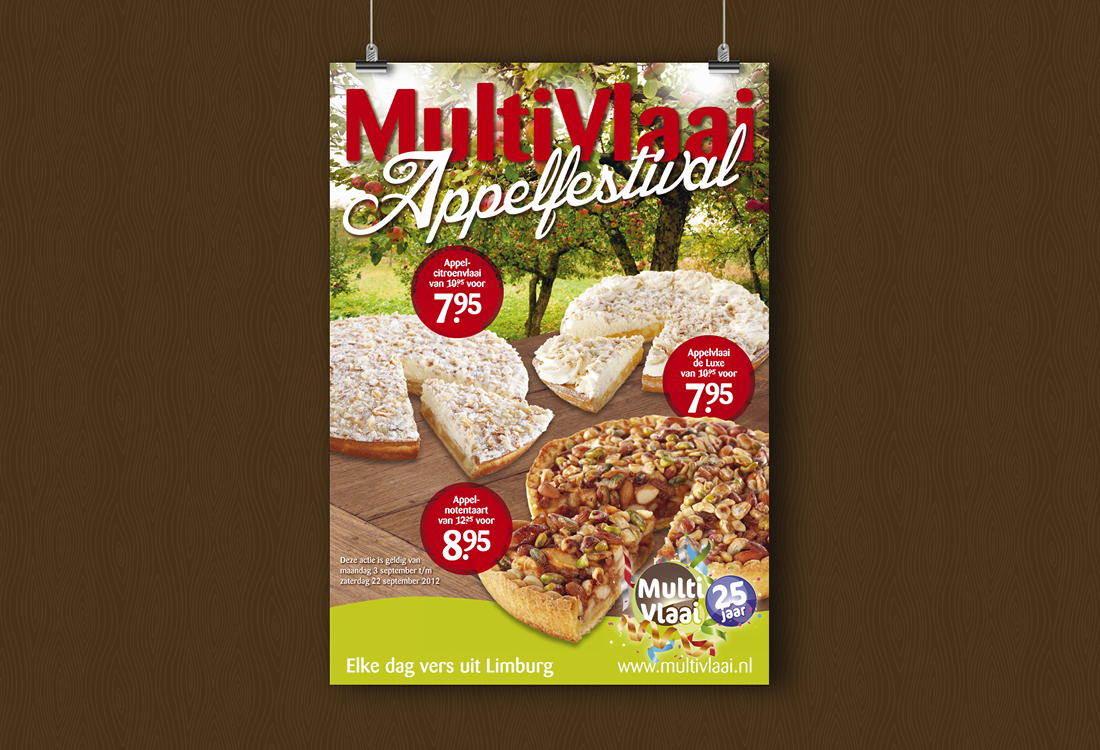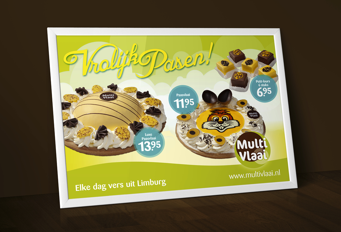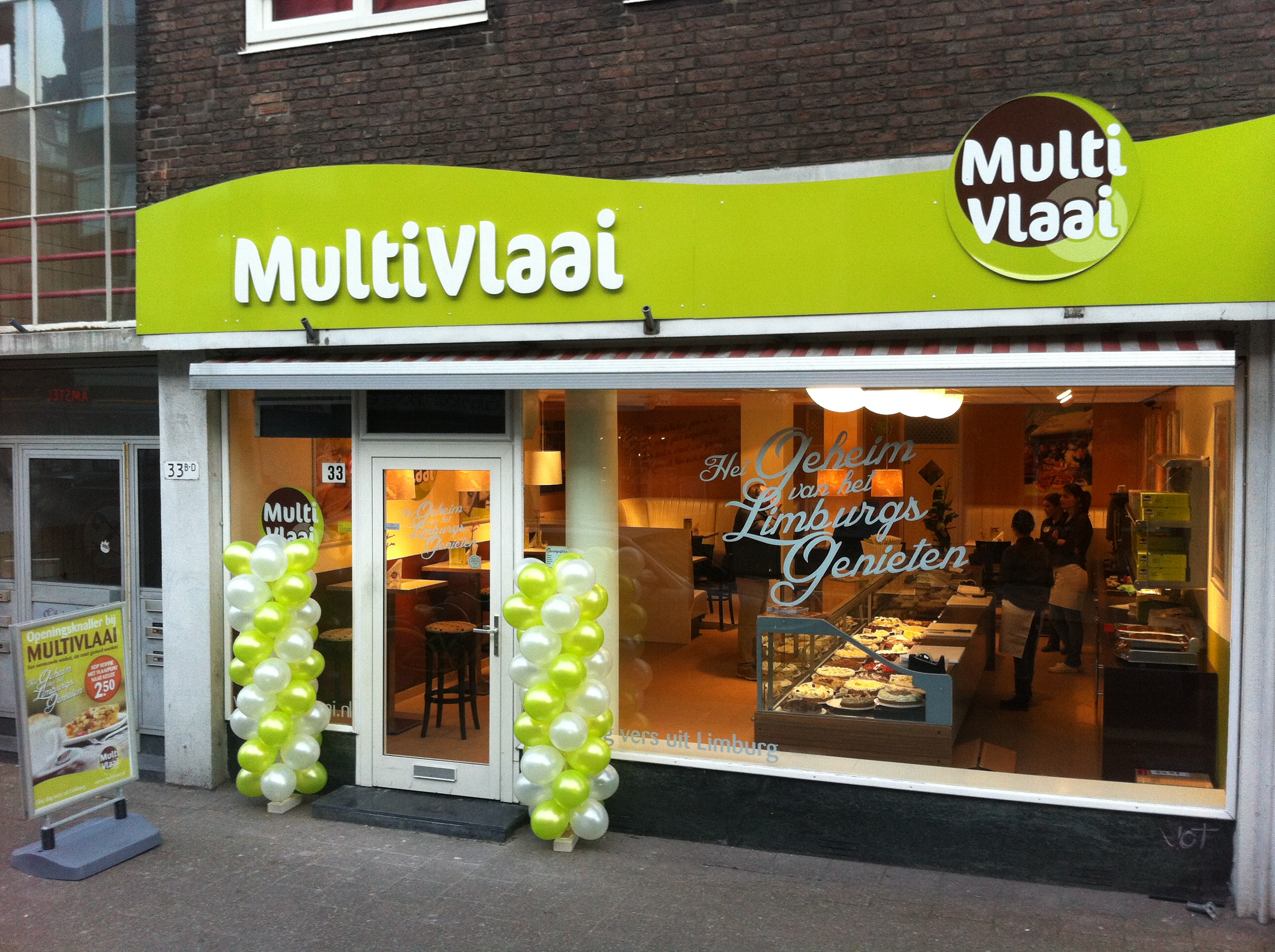 For more than 30 years, MultiVlaai has been the largest and most popular supplier of tortes and vlaaien — a pie or tart typical for the provinces of Limburg — in the Netherlands. The franchise has more than 100 stores across the country. Since around 2012, the visual identity relies on the boldest weight of Evert Bloemsma’s FF Cocon for the logo and name.