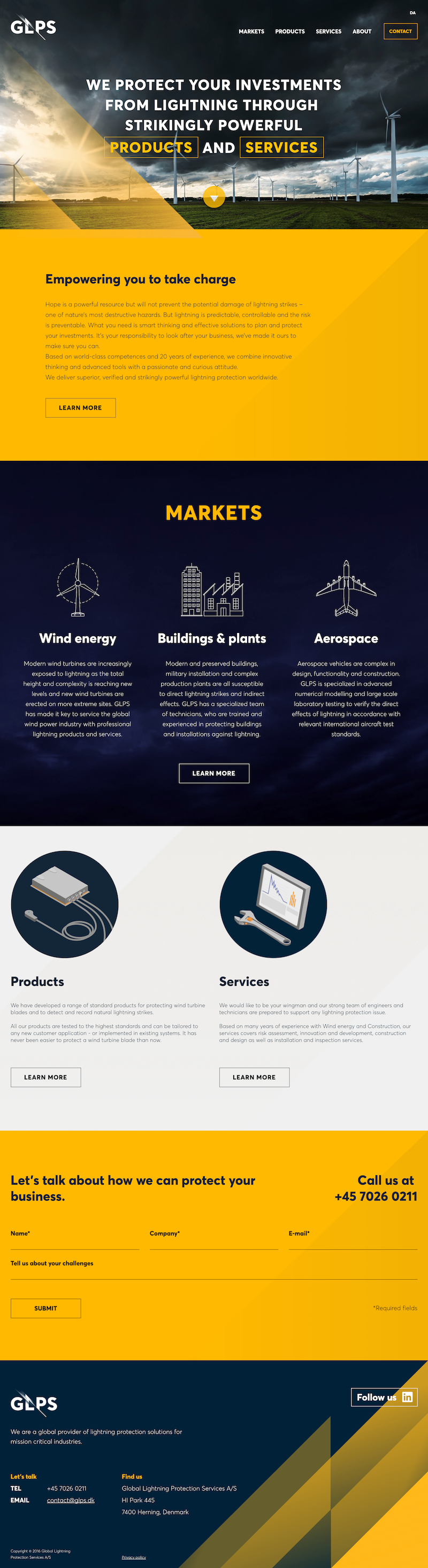 Global Lightning Protection Services A/S (GPLS) is a global provider of lightning protection solutions for mission critical industries. They have 20 years of experience, and by combining innovative thinking and advanced tools they protect investments from lightning through stikingly powerful products and services.