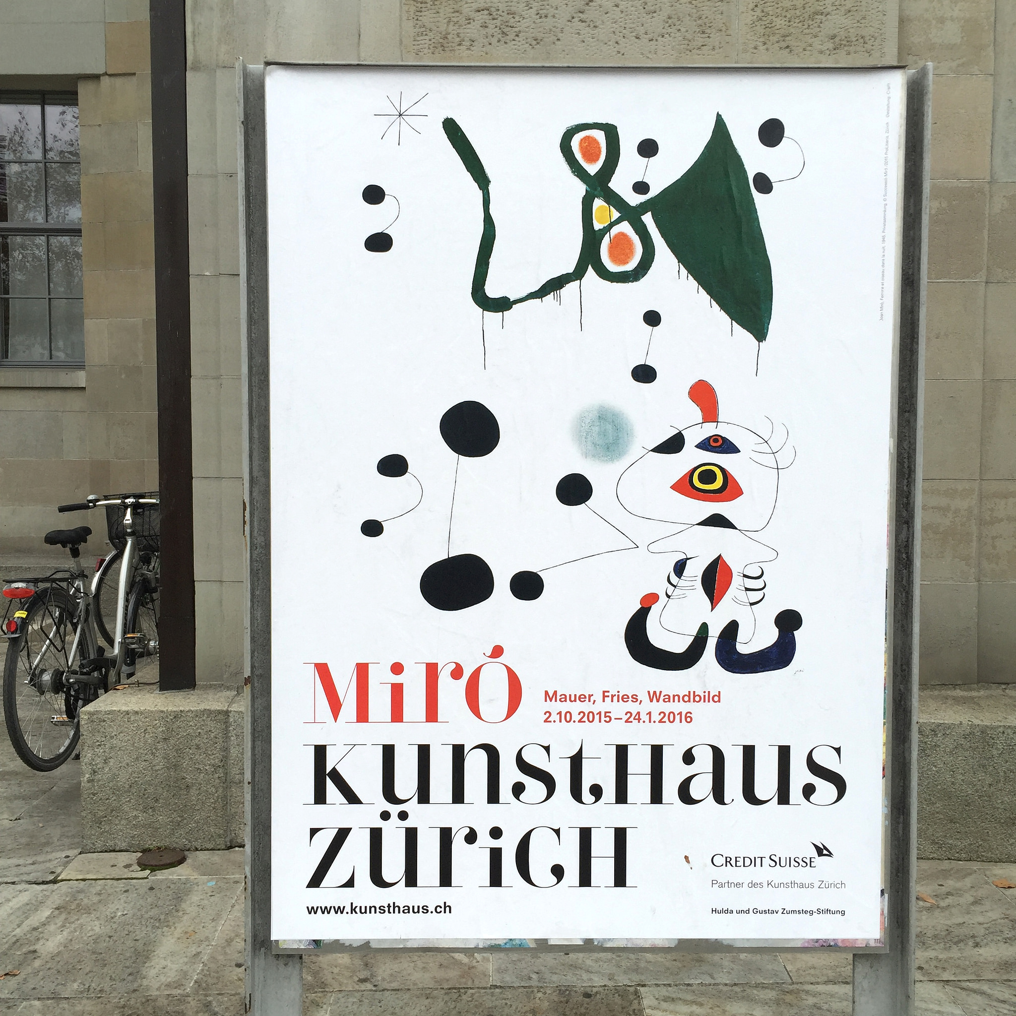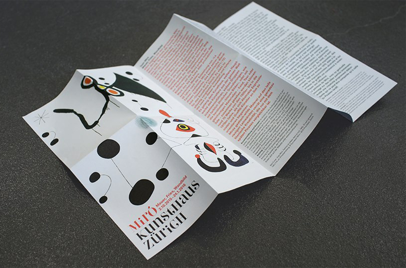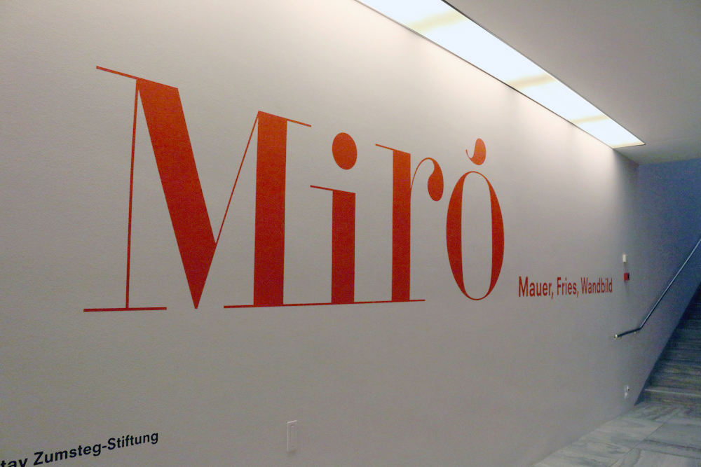 Perla is a thoughtful choice for the branding of the Joan Miró exhibition Mauer, Fries, Wandbild / Wall, Frieze, Mural in Kunsthaus Zürich. Its circular, ball terminal motif and mix of upper and lower case characters reference Miró’s own lettering. The Didone style letterforms are a formal counterbalance to the gestural artwork, and were often used in Miró’s poster designs.
