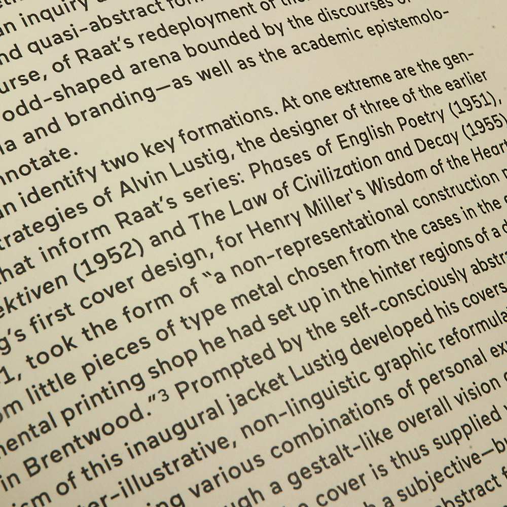 The accompanying essay by John C. Welchman discusses how Raat’s work operates at the technical interface between abstract painting and visual construction and on the generic borderlines between art, design and the history of ideas; and how his intervention precipitates a salient crisis in the signifying assumptions delivered to non-figurative compositionality in the mid-twentieth century—and its later reassessments. Prompted by an ethos of design that fronts the inevitability of reading, Raat’s project asks how abstract signs have been organized as the future of a long and stealthy illusion.