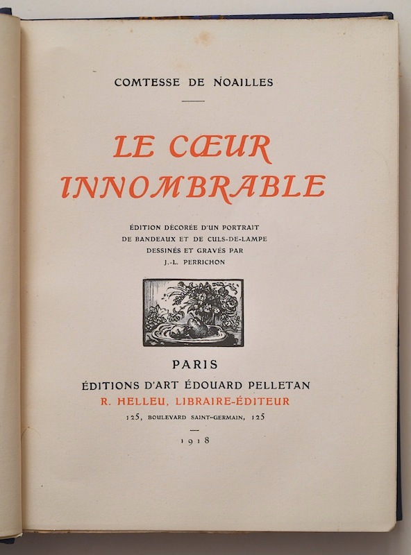 Le Cœur innombrable by Anna de Noailles Photo(s) by Alexis Orloff. Imported from Flickr on May 14, 2017. Artwork published in 1918. Source: www.flickr.com Uploaded to Flickr by Alexis Orloff and tagged with “grasset”. License: All Rights Reserved. Title page of Le Cœur innombrable by Anna de Noailles, Editions d’Art Édouard Pelletan / R. Helleu, Libraire-Éditeur Typefaces More about Grasset Formats Books (6670) Topics Literature (3088) Tagged withtitle pages (1067)1910s (74)French (language) (2603)all caps italics (588)red and black (1154)all caps (7818)center-aligned text (1961)poetry (399)Anna de Noailles (1) Artwork location France (2915) Paris (1362) In SetsPHANTA (Leonardo de la Fuente) (2330) Post a comment Name Email – will not be published Website Your response Submit Comment More Grasset in use Bamag-Licht product catalog1909unknownContributed by Florian Hardwig Framboise Pépin et ses environs by François de Bondyc. 1923unknownContributed by Eva Silvertant Staff Pick Album de 63 Modèles de Cottages et Construction Rurales1912unknownPhoto(s) by patricia m on Flickr. Sponsor More in Literature Detransition Baby by Torrey Peters2021Penguin Random HouseFritz MetschContributed by Gareth Hague Bowes & Bowes shopping bagContributed by Stephen Coles Staff Pick KABK The Hague library signs2019Namrata GoyalContributed by Namrata Goyal Staff Pick Do Androids Dream of Electric Sheep? by Philip K. Dick (Panther)1972Michael McInnerneyContributed by Florian Hardwig Staff Pick More in Books Disque Pur2019Bonjour MondeContributed by Plain Form Paysans designers: l’agriculture en mouvement2021Clément Le Tulle-NeyretContributed by Clément Le Tulle-Neyret Staff Pick Fahrenheit 451 book cover, 1972 Ballantine Books edition1972unknownContributed by Nick Sherman Staff Pick MagiC Carpets2024TaktikaContributed by WrittenShape Type Foundry More Fonts In Use Nike LeBron 9 Shoes Ads (Design Explorations)2013HortContributed by Stephen Coles Staff Pick Thorlo (2023 rebrand)2023High TideElizabeth GoodspeedContributed by Elizabeth Goodspeed Staff Pick Mod stickersc. 1974Contributed by Florian Hardwig Staff Pick Inherent Vice posters, promo art, and jacket design2014BLT CommunicationsTal GoretskyDarshan ZenithContributed by Garrison Martin Staff Pick