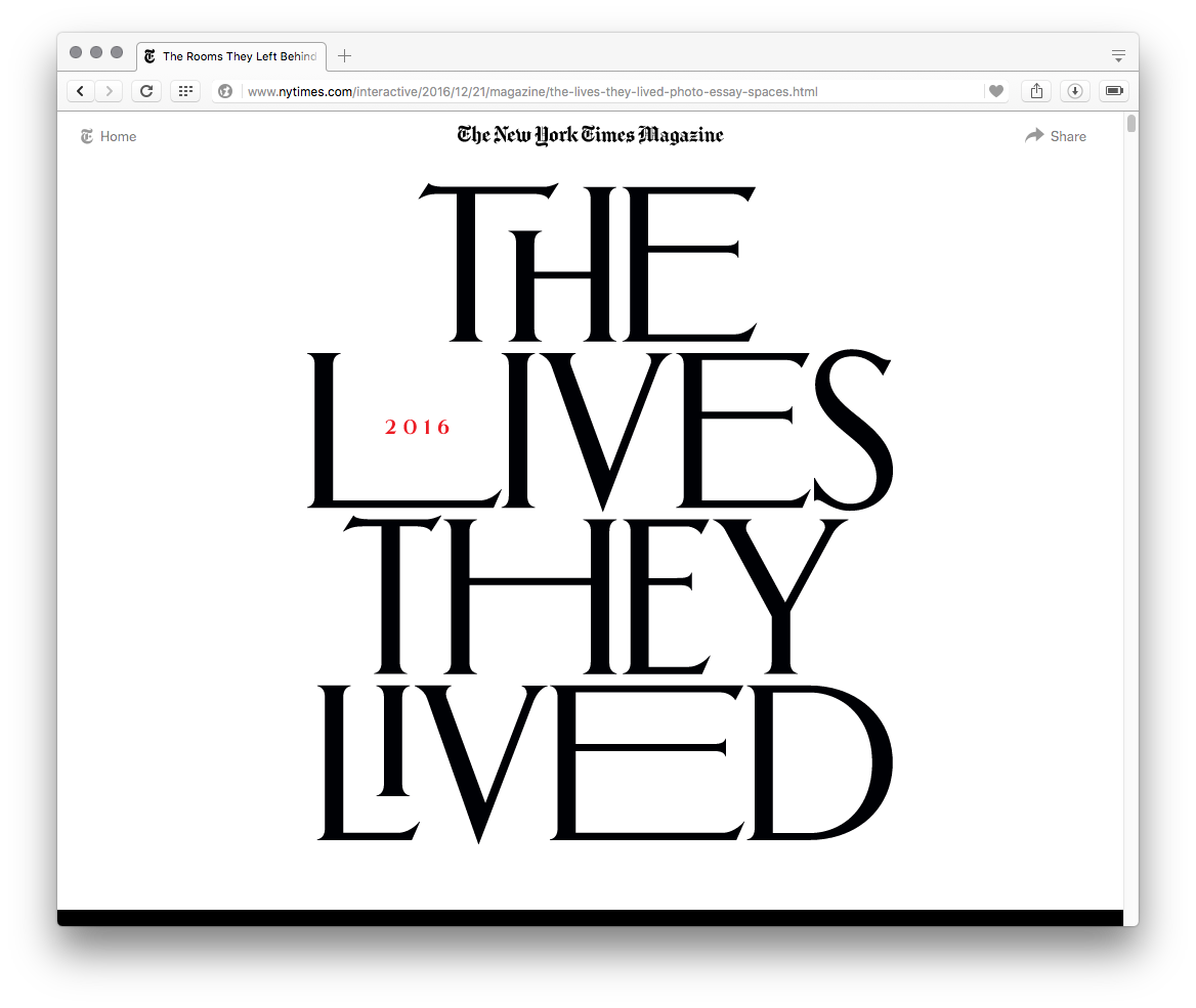 1 Comment on “The New York Times Magazine, “The Lives They Lived” 2016 issue, online edition”