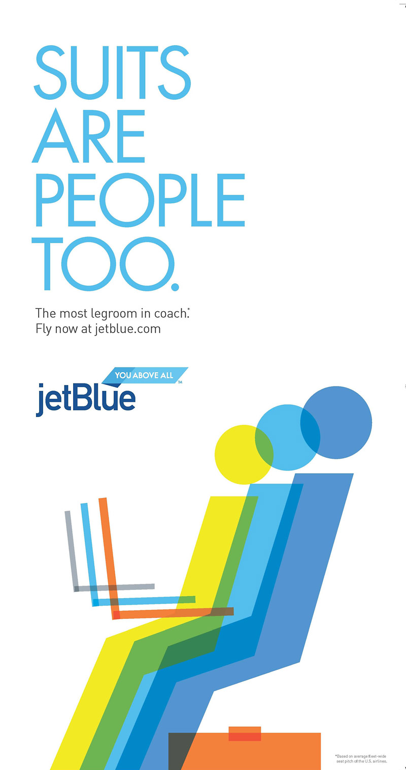 jetBlue Airways ads Contributed by Fonts In Use Staff on Apr 26th, 2012. Source: adsoftheworld.com License: All Rights Reserved. Advertising Agency: Mullen, USA Executive Creative Director: Mark Wenneker Group Creative Director: Tim Vaccarino Group Creative Director: Dave Weist Digital Creation: Jamie Ferreira Associate Creative Director: Jesse Blatz Source: adsoftheworld.com License: All Rights Reserved. Source: adsoftheworld.com License: All Rights Reserved. Source: adsoftheworld.com License: All Rights Reserved. Source: adsoftheworld.com License: All Rights Reserved. Source: adsoftheworld.com License: All Rights Reserved. Typefaces More about FuturaGet Futura Formats Advertising (2120) Topics Travel (800) Designers/Agencies Mullen Tagged withJetBlue (2) Post a comment Name Email – will not be published Website Your response Submit Comment More Futura in use AAF Omaha Bowl-a-Rama2017WebsterSean HeislerContributed by Chris Purcell Song Exploder websitec. 2021Hrishikesh HirwayContributed by Hrishikesh Hirway The Market Kitchen2015Sean KaneContributed by Sean Kane Sponsor More in Travel East Coast Greenway Sign2002PentagramContributed by Jonathan Judd Cheuvreux Notaires exhibition booklet2023Bureau 205Contributed by 205TF “Greetings from Valentine, Nebraska” postcardc. 1965unknownPhoto(s) by Cardboard America™ Collection on Flickr. MOB Préface – reader for MOB Hôtel2015Building ParisContributed by Bureau Brut More in Advertising Aviation and space travel coin sets by Shellc. 1970unknownDanbury MintContributed by Florian Hardwig In-use examples from Bauer Corvinus brochurec. 1935unknownContributed by Stephen Coles Staff Pick Amtrak Wi-Fi2011Arnold DCContributed by Fonts In Use Staff “Papiere und Pappen” ad by F.J. Schirmer & Co.1925unknownContributed by Stephen Coles More Fonts In Use Appartement2010BedowContributed by Stephen Coles Staff Pick Rijksmuseum Boerhaave2017FabriqueSiloContributed by Matthijs Sluiter Staff Pick “Everything’s Out of Whack” Clearasil ad1994unknownContributed by Bryson Stohr Staff Pick Rapscallion Soda2020Freytag AndersonContributed by Mark Bloom Staff Pick