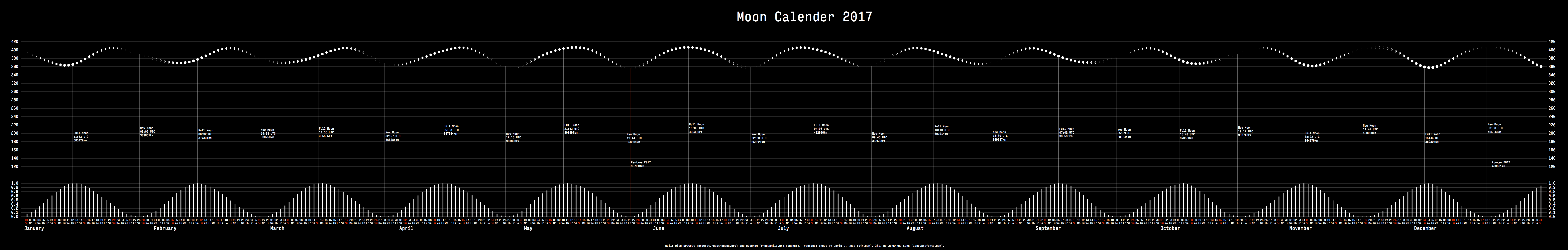 2017 moon calendar Contributed by Nick Sherman on Jan 6th, 2017. Artwork published in 2017. License: All Rights Reserved. A detail of the calendar Designed and produced by Johannes Lang, using DJR’s Input Mono Condensed. Not to be confused with Just van Rossum’s 2017 moon calendar that also uses Input. High-res PDF available here. Source: twitter.com License: All Rights Reserved. Typefaces More about Input MonoGet Input Mono Formats Posters/Flyers (5870) Infographics/Maps (569) Topics Home/Interior (840) Science/Nature (1148) Designers/Agencies Johannes Lang (2) Tagged withcalendars (155)moon (132)data visualization (120)red and black (1153)reversed type (3460)DrawBot (3)moon calendars (12)one typeface (1764)astronomy (21)moon phases (14) Artwork location Austria (482) Vienna (294) In SetsInterface (Matthijs Sluiter) (107) Post a comment Name Email – will not be published Website Your response Submit Comment More Input Mono in use Career Expo2015John ProvencherContributed by John Provencher Staff Pick 2017 moon calendar2017Just van RossumContributed by Nick Sherman Offices in Times of Homeoffice2021Lisa Fesslag—propContributed by Lisa Fessl Sponsor More in Science/Nature Charles Darwin – The Origin of Species (Collier Books)1962Kenneth R. DeardoffContributed by Annie Szafranski Staff Pick FOUT! FEHLER! illustration2013Studio Het MesContributed by Matthijs Sluiter I Read Where I Am2011LUSTContributed by Stephen Coles Staff Pick OnZero website2024Martin KlaffensteinerContributed by Store Norske Skriftkompani More in Infographics/Maps “Unser neues Zuhause!” change of address2015Präsens BüroRaphael SchoenContributed by Nick Sherman Staff Pick Powers of Ten1977Ray EamesCharles EamesEames OfficeContributed by Nick Sherman Staff Pick GGW annual report 20162017Betty und BettyContributed by Betty und Betty 100 Percent2010Ian Walsh DesignContributed by IanwalshDesign More Fonts In Use Casa Camper Hotels, “Happy Holidays”c. 2024Studio RosesContributed by Altiplano Typefaces Staff Pick Uniformbooksc. 2013Colin SackettContributed by Laurence Penney Staff Pick Miss Tique DamesmodeunknownContributed by Florian Hardwig Staff Pick Kleding Maken – De makkelijke handleiding voor Zelfmaakmode1978Henriëtte BeukersHenk BeukersHaico BeukersContributed by Matthijs Sluiter Blog