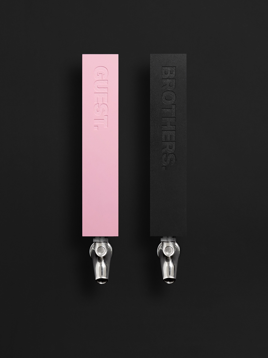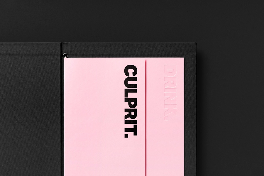 Culprit’s brand identity, created by Studio South, is described as being dark and moody. This intended to visually articulate something of the restaurant’s menu, service, which sees diners presented with trays and trolleys, and as a way to compliment Kirsty Mitchell’s interior design. Menus, beer taps, posters and signage are linked by distinctive colour palette, geomtric shapes and a consistent use of Aktiv Grotesk Extra Bold.