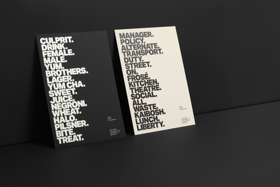 Culprit is a bar and restaurant located on Auckland’s Wyndham Street. It has a menu made from ingredients supplied by local New Zealand producers, growers and farmers, and is inspired founder’s Kyle Street & Jordan MacDonald’s travels across the United States and Europe.