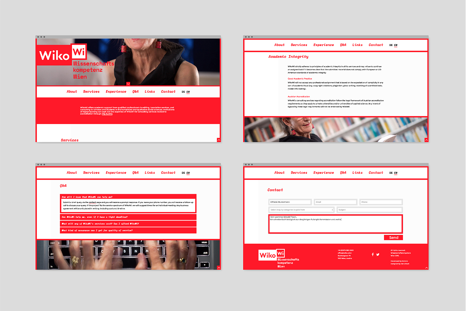 WikoWi has English and German speaking clients so it was important for bilingualism to be seamlessly integrated in the web-design. This was resolved by using Space Mono Bold Italic only for English, and Space Mono Bold being used for German.