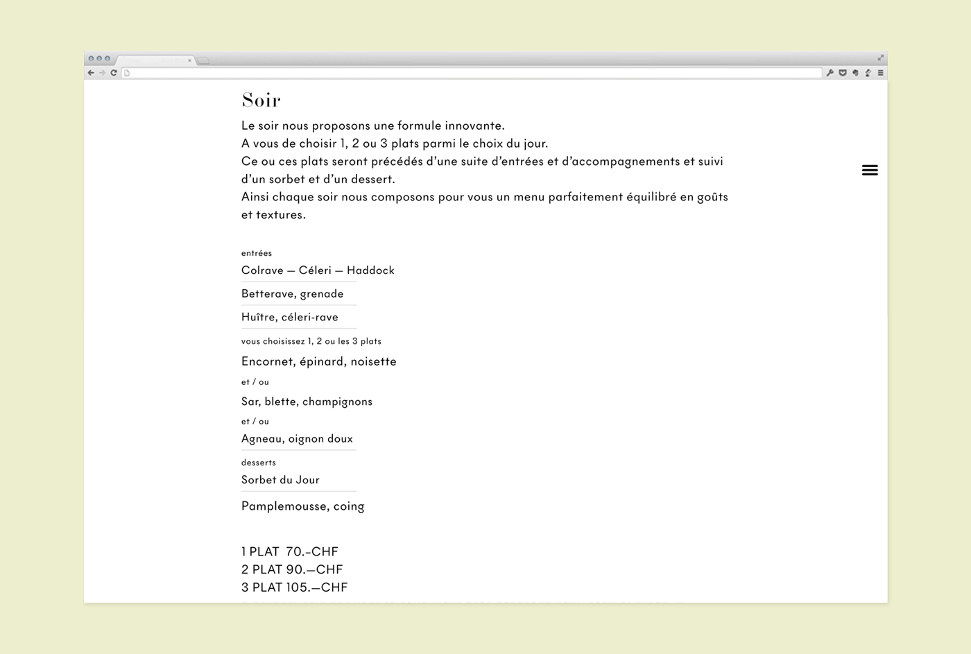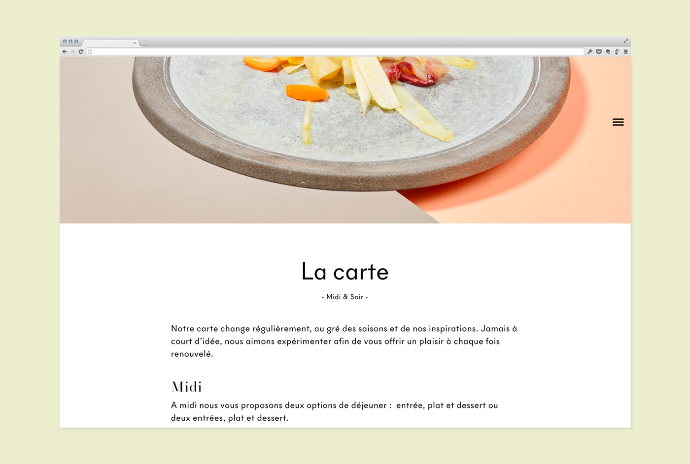 Le Neptune Contributed by Swiss Typefaces on Jan 28th, 2017. Artwork published in circa 2016. Source: basedesign.com License: All Rights Reserved. Le Neptune is a Swiss restaurant based in Geneva. The website was designed by the agency Base Design and realized by Monoloco. (images © Sandra Pointet) The NewParis collection is available from Swiss Typefaces. License: All Rights Reserved. License: All Rights Reserved. License: All Rights Reserved. License: All Rights Reserved. License: All Rights Reserved. License: All Rights Reserved. Typefaces More about NewParisGet NewParisMore about NewPanamGet NewPanam Formats Web (5659) Branding/Identity (8511) Topics Food/Beverage (3080) Designers/Agencies Base Design (15) Tagged withrestaurants (485)food (291)type series: sans+serif (384)type series (627)reversed type (3411)italics (718) Artwork location Switzerland (1127) Genève (91) Post a comment Name Email – will not be published Website Your response Submit Comment More NewParis in use Harper’s Bazaar 2021 redesign2021Laura GenningerSTUDIO 191Contributed by Swiss Typefaces Staff Pick Q-KJUc. 2015ultra:studioContributed by Swiss Typefaces Staff Pick Hauteville House guide2019Atelier PentagonContributed by Swiss Typefaces Sponsor More in Food/Beverage Otto’s Burgerc. 2015HochgestaltenContributed by Lecter Johnson Golden Burgersc. 2014unknownContributed by Florian Hardwig Brutal Burrito2021Tres Tipos GráficosContributed by Nico 3TG Charlie Mom, New York Cityc. 1983Contributed by Florian Hardwig More in Branding/Identity 52nd Dimitria Festivalc. 2017Dimitris PapazoglouContributed by Grilli Type Urban ExoticBrandon McIntoshContributed by Brandon McIntosh FutureLazerTigerc. 2017TractionTerry SietingContributed by Terry Sieting Pensionati.it2024FF3300Marco Goran RomanoContributed by Stephen Nixon More Fonts In Use Monster Kitchen and Bar2016U-PContributed by Benoît Bodhuin Staff Pick Thank Us Later* (or don’t)2022ZeevaarderContributed by Benoît Bodhuin Staff Pick Le mois du Film documentaire 20132013Julien LelièvreContributed by Florian Hardwig Staff Pick Art Center College of Design, 1999/2000 catalog1999Denise Gonzales CrispContributed by Kontour Staff Pick