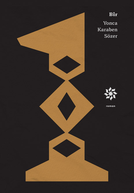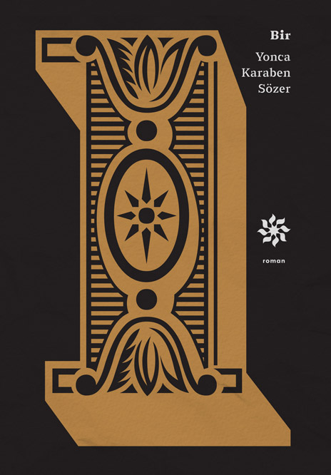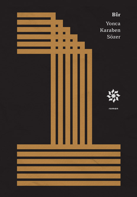 The title of Yonca Karaben Sözer’s novel Bir (Doğan Kitap) is Turkish for “one”. Geray Gençer designed a set of four cover variations, with different decorative 1s — customised, based on FF Scala Jewel Diamond, Moku 26 Birch, Bodoni Ornamental, and Ziggurat. Sabre is used for the text and also appears on the back cover.