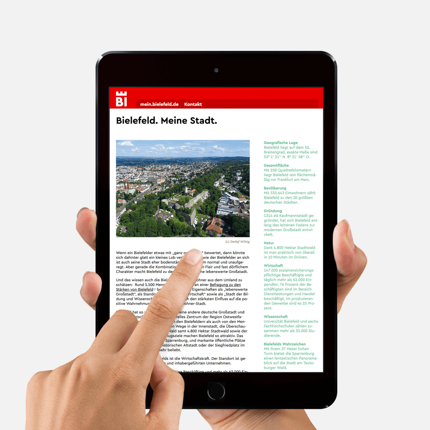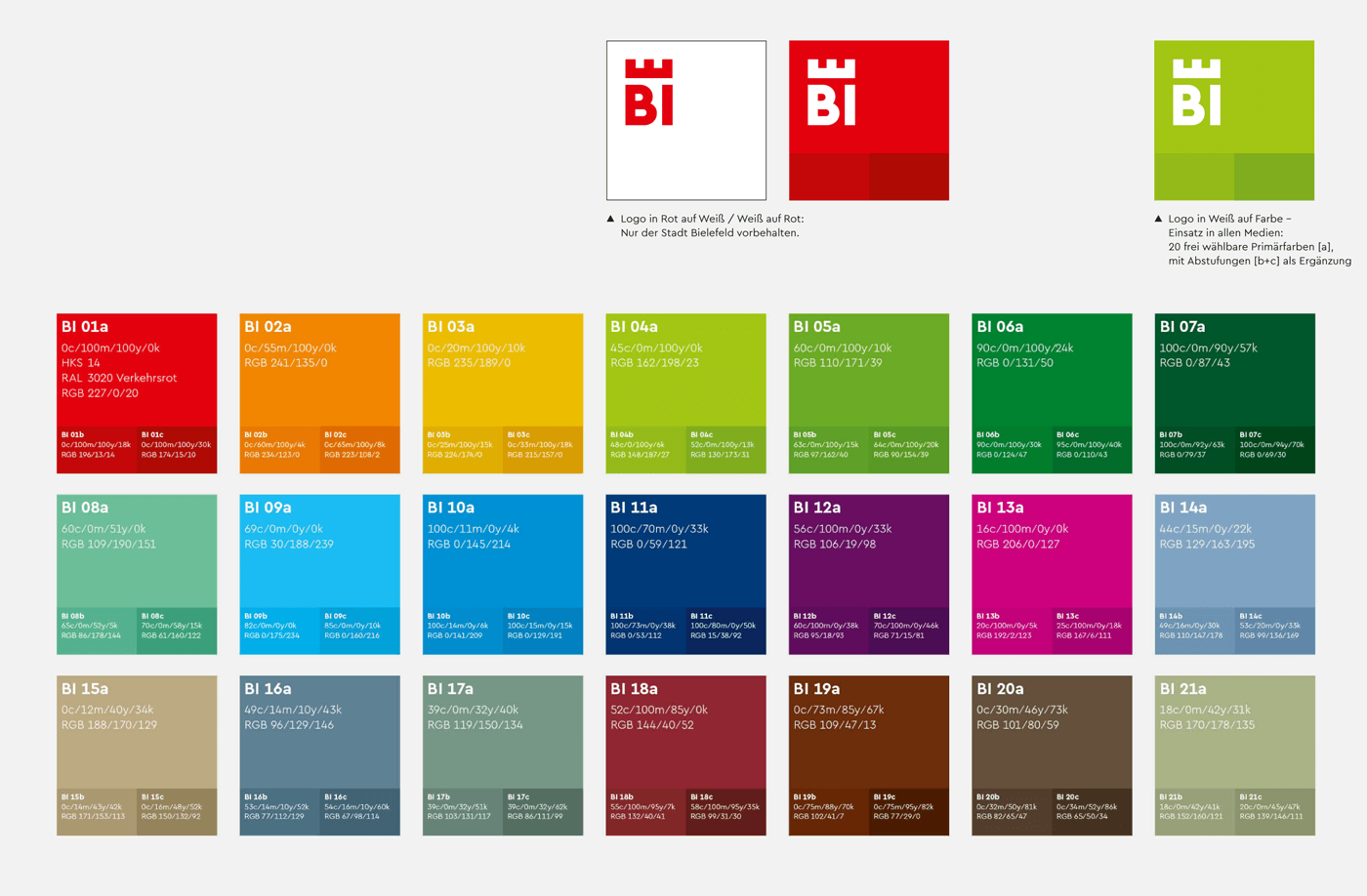 The visual identity was created by deteringdesign. Founder Marc Detering made it clear that, where many other public identities end up falling back on system fonts when they leave the hands of the design agency, Bielefeld’s identity was going to be different.