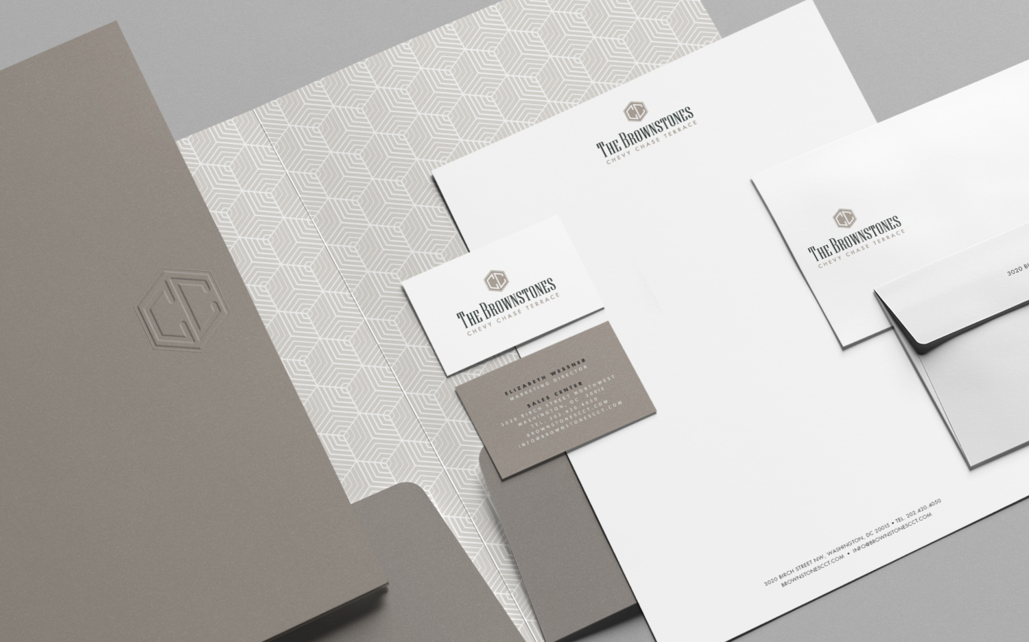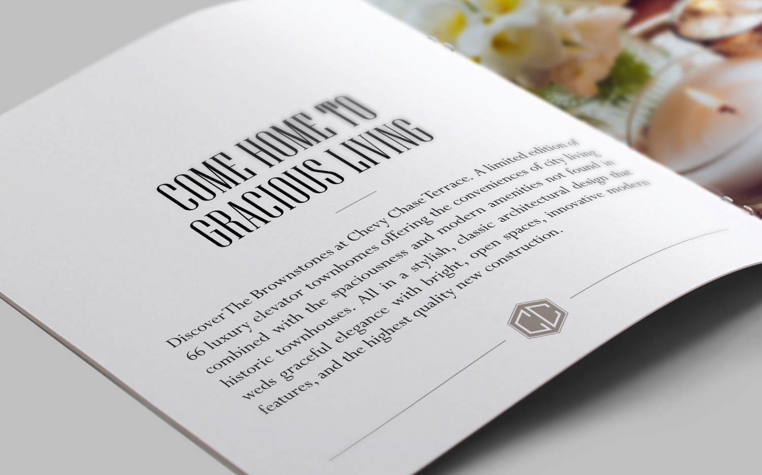 The Brownstones at Chevy Chase is a neighborhood of stately townhomes in Maryland. It combines an aesthetic of classical elegance with a lifestyle of modern luxury. Features include private gardens, open floor plans, and refined finishes. Proposal for visual identity system, collateral and interactive design.