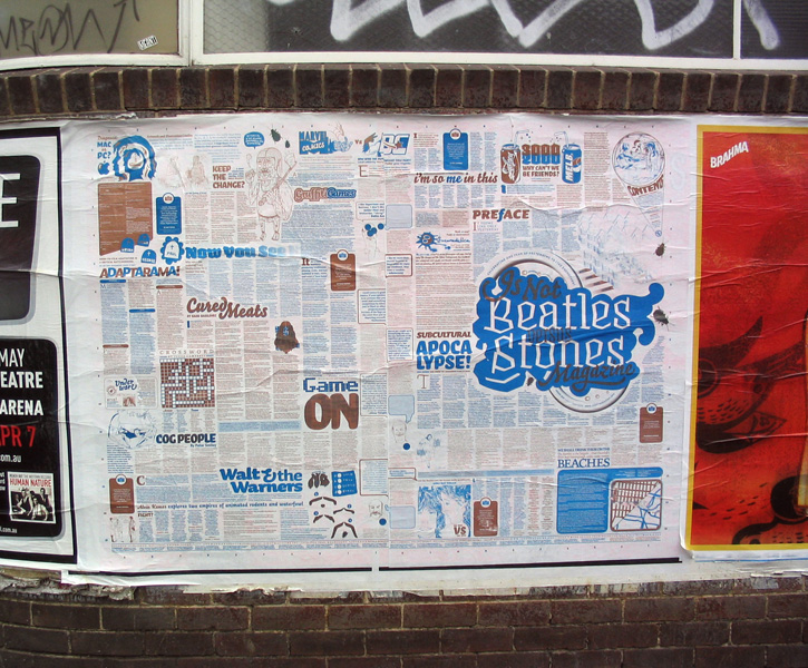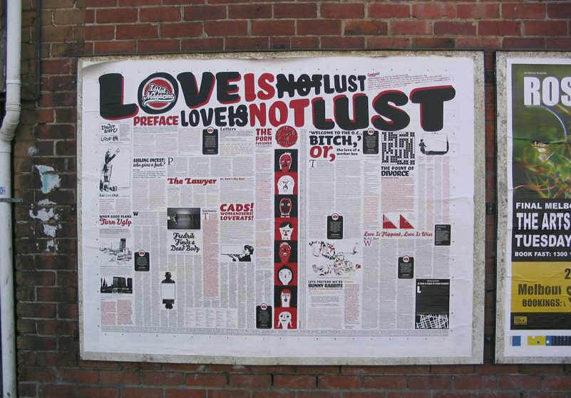 Is Not Magazine was a project initiated by (Chase & Galley founder) Stuart Geddes (with friends Mel Campbell, Natasha Ludowyk, Penny Modra and Jeremy Wortsman) in 2004. It was published as a four-sheeter (2m x 1.5m) bill poster on the streets of Melbourne and Sydney from April 2005 to July 2008. It published a range of fiction and non-fiction content in many forms including, but not limited to, 2000 word essays, 300–500 word columns, comics, illustrations, diagrams, and 160 character (text message length) 'flash fictions’. There was also a crossword.