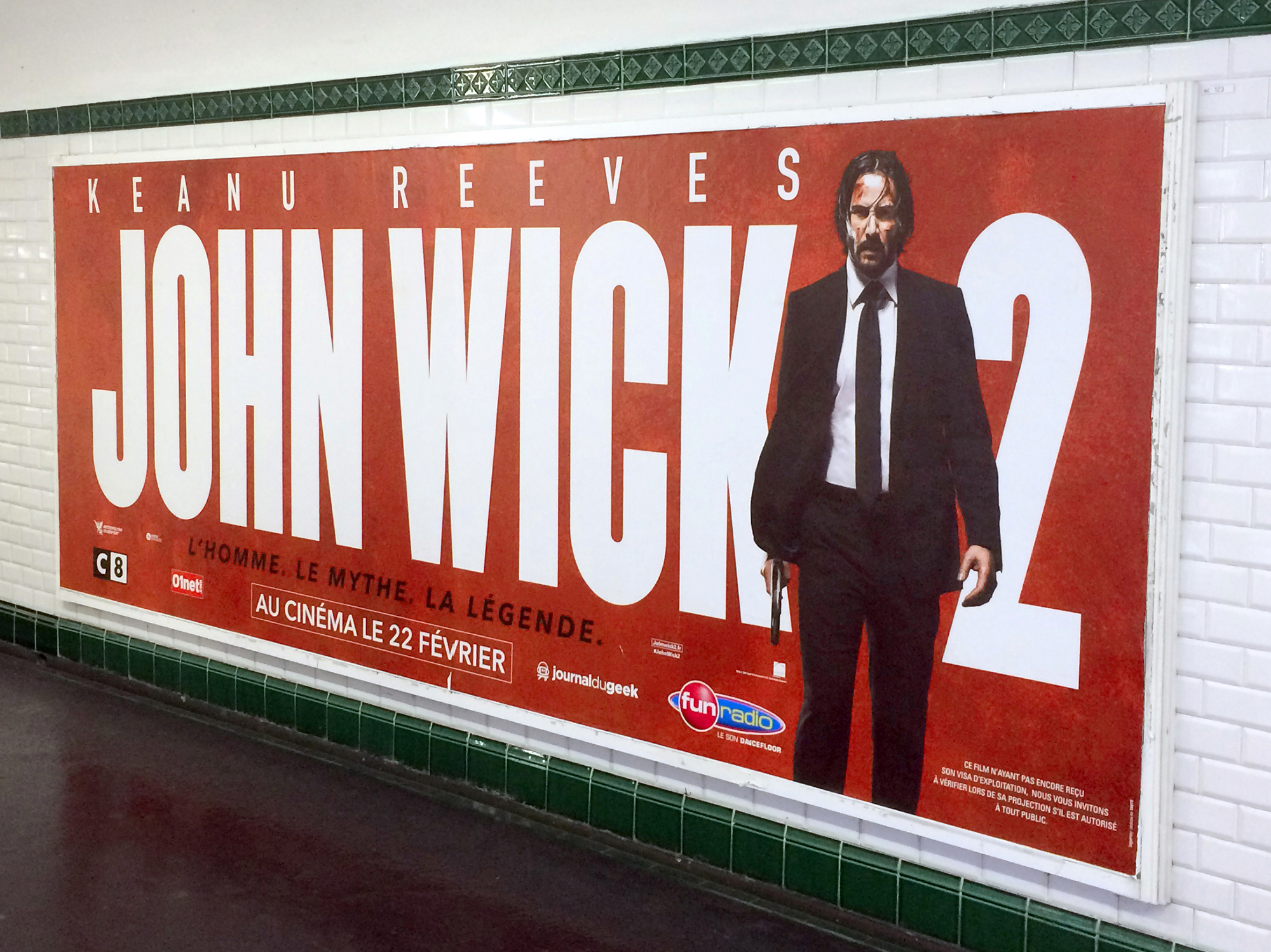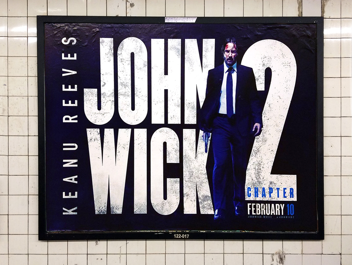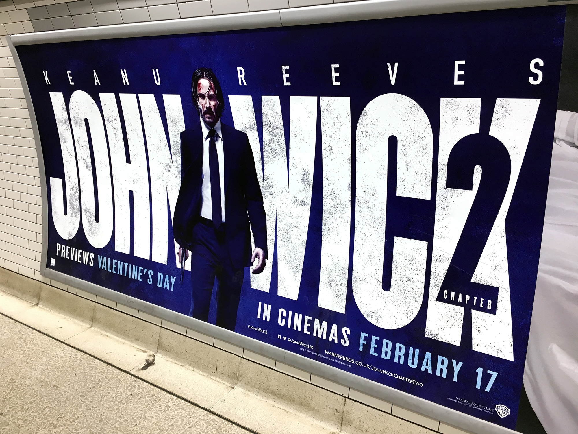 For action movie John Wick: Chapter 2, Cactus is used for posters and publicity. The super-big, fitting-to-format type, and the balance between type and image is very effective. However, the film title, at least for the trailer, is a completely separate design.