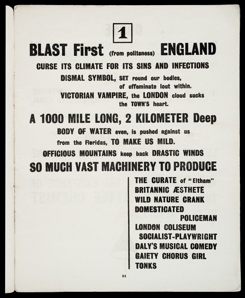 John Morgan studio has been art-directing high-profile art magazine ArtReview since September 2013. For the “Future Greats” issue, Morgan and his staff channelled their inner Wyndham Lewis (1882–1957) and emulated the layout of BLAST, the short-lived Vorticist revue launched by Lewis in 1914 (see image below, as well as the dedicated entry).