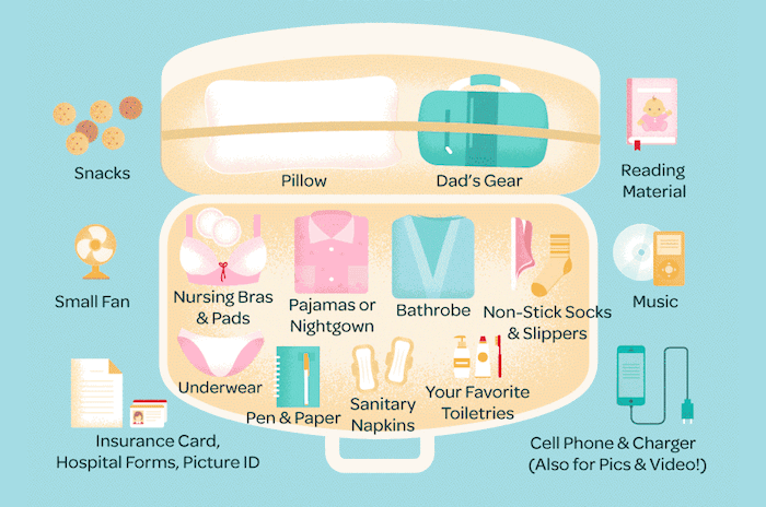 “Packing for the Hospital. A Labor of Love” — detail of an illustrated infographic aimed at parents-to-be
