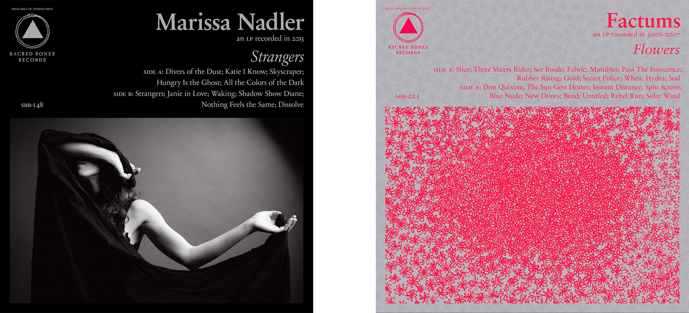 One of Sacred Bones strongest aspects is the consistent design of their LP covers, achieved by using a template that has remained the same since their fourth release, Factums’ The Sistrum in 2008.