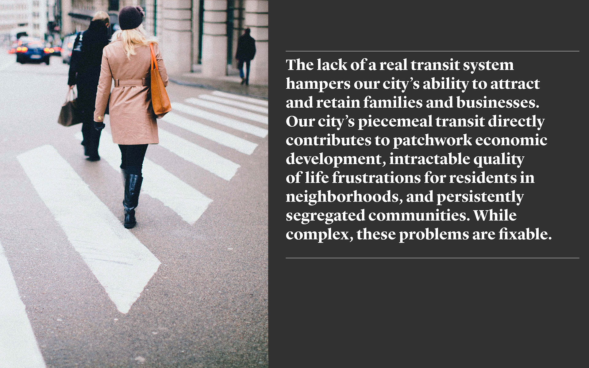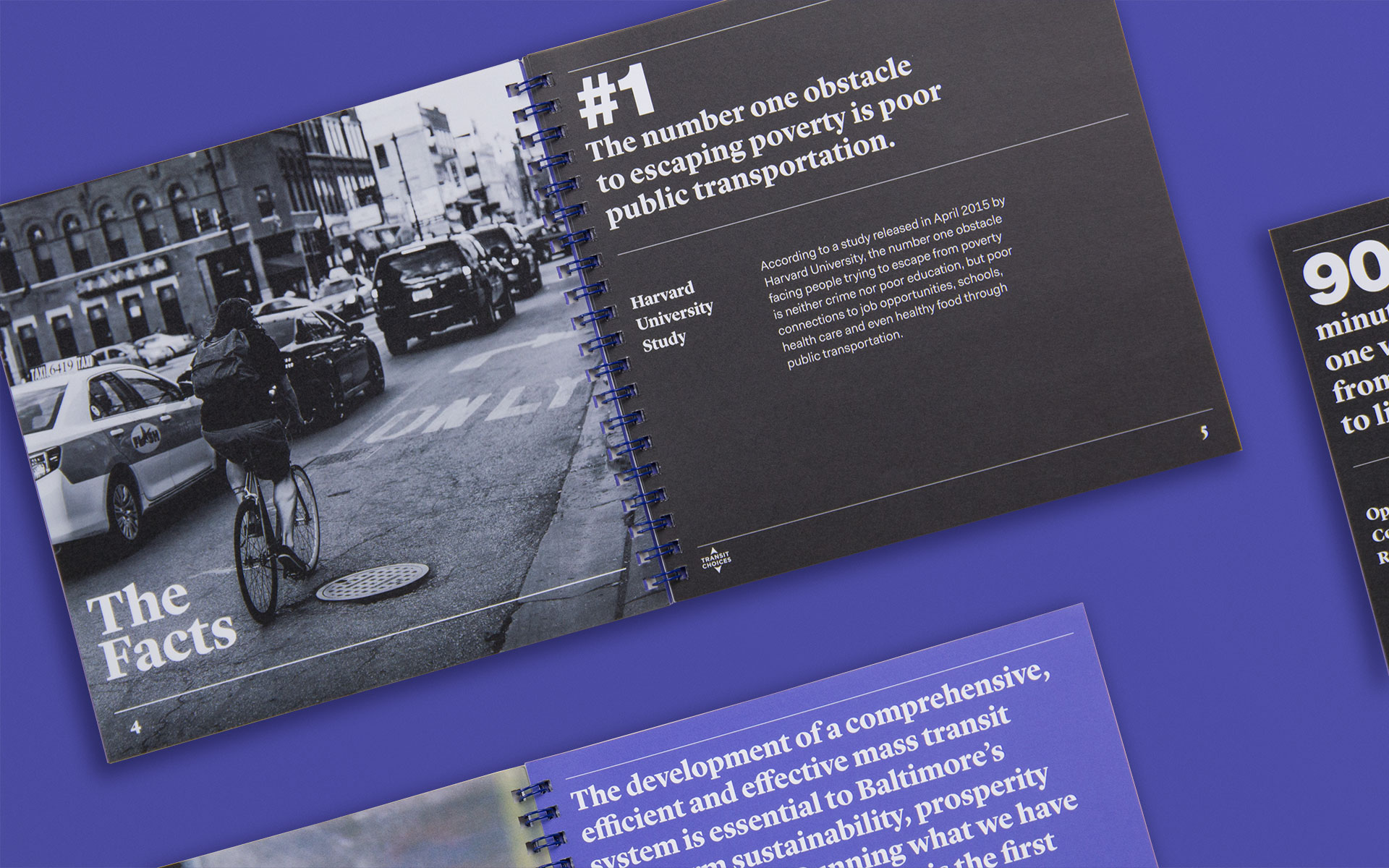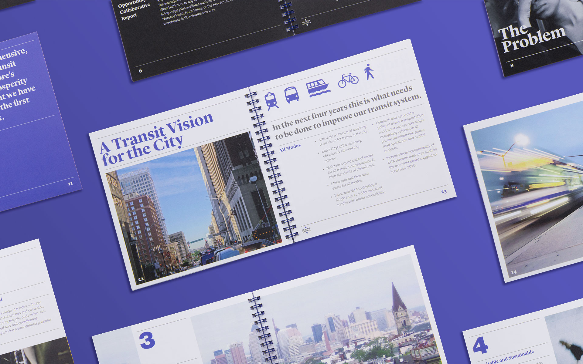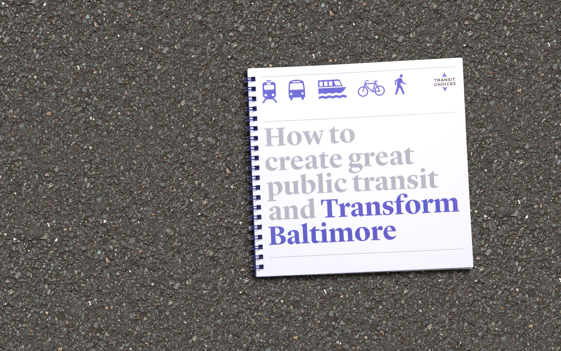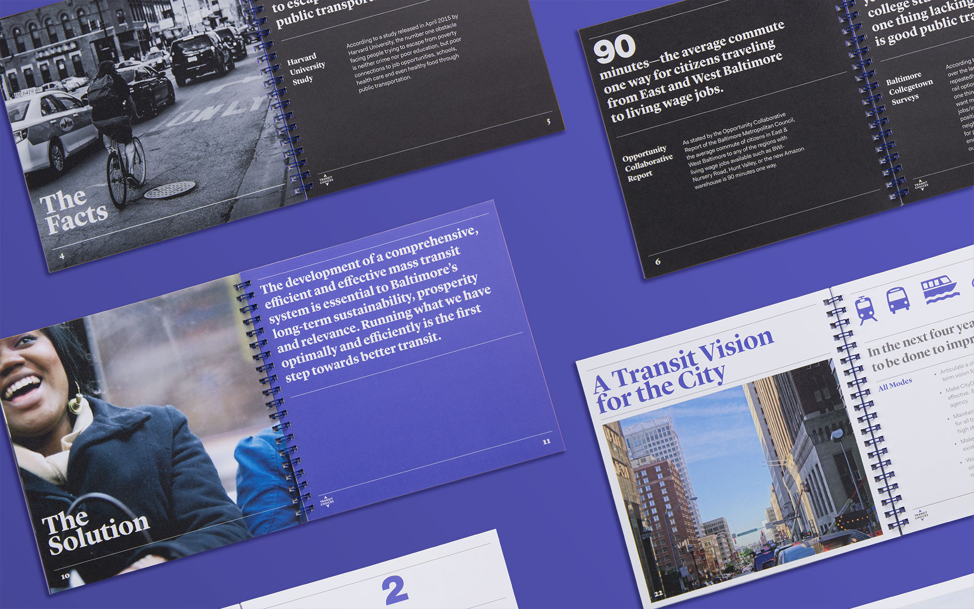 Transit Choices is a coalition of organizations and individuals passionate about establishing a high-functioning, reliable, and integrated transportation system in Baltimore. To raise interest and instill action in the cause, we designed an eye-catching brochure that articulates the vision and speaks to people of all voices and views on the subject. Transit Choices sent copies to the Mayor’s office in hopes of kick-starting the much needed improvement process.