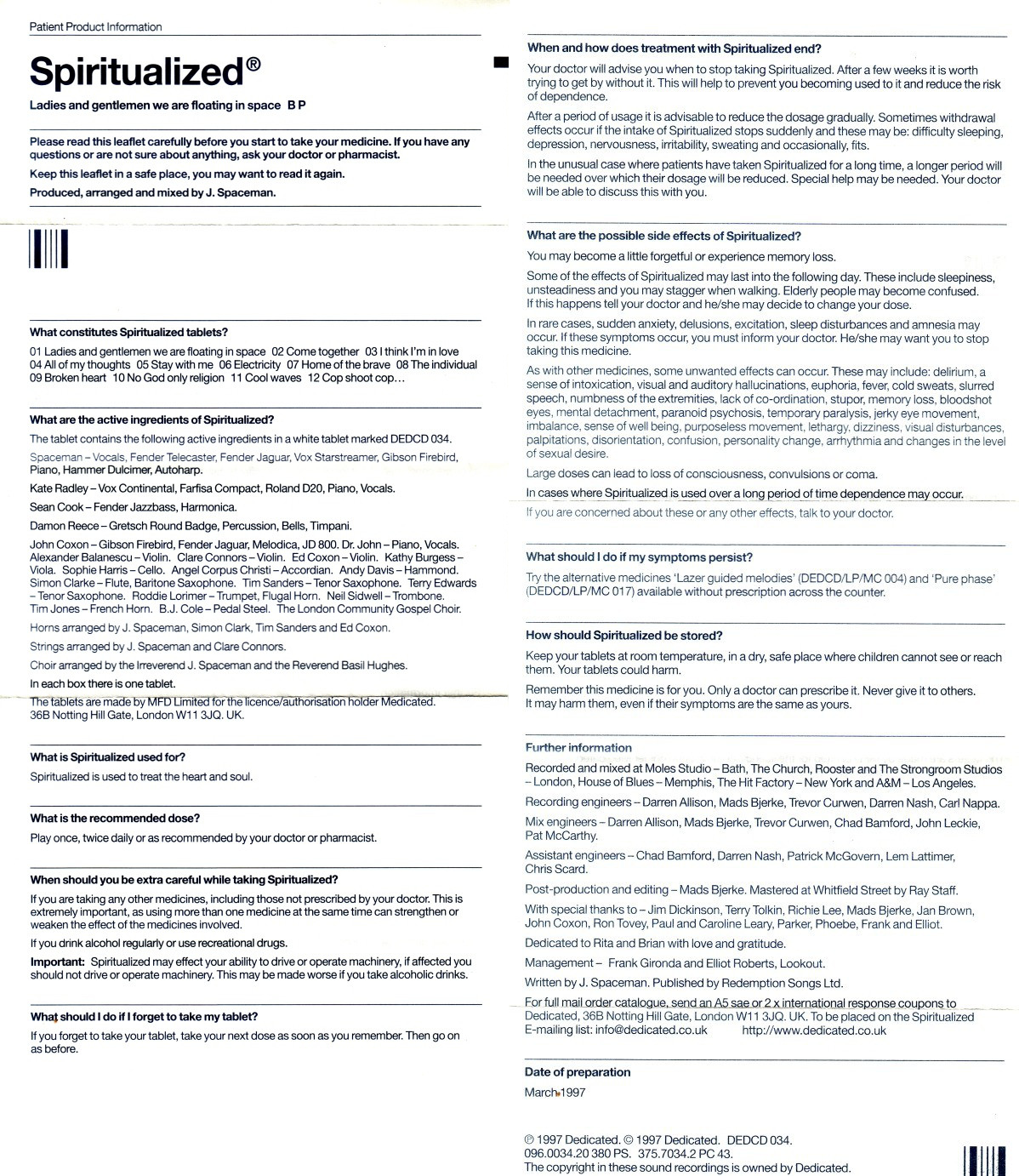 Equally iconic as the music is Mark Farrow’s album artwork. Designed in his trademark minimal style, it relies solely on Neue Helvetica and references the all too familiar packaging of prescription medicine, echoing the themes of both the album and the era. Farrow even went so far as to create a version in an enlarged medicine box, featuring an oversize blister pack containing the disc and a lengthy leaflet with dosage instructions.