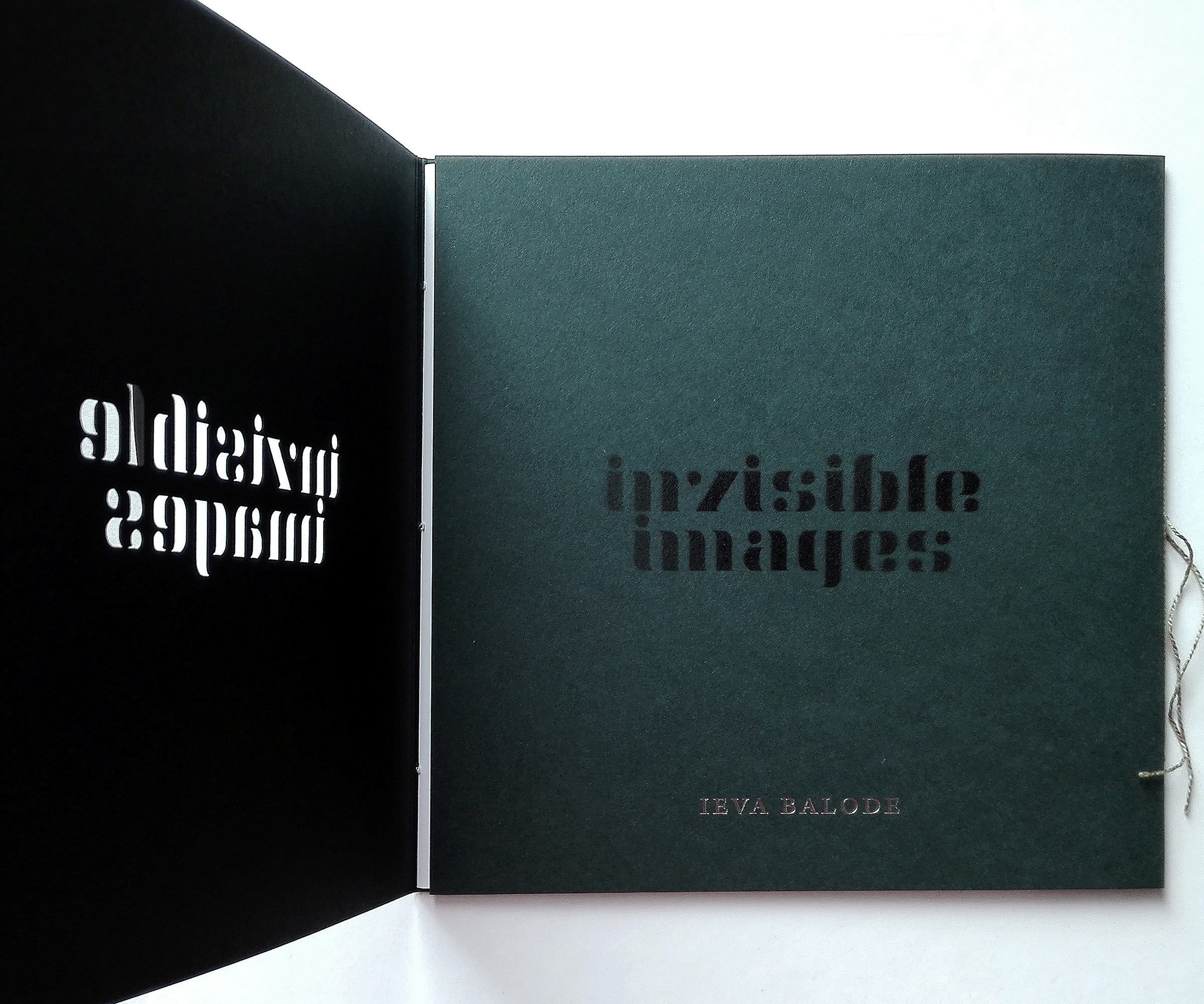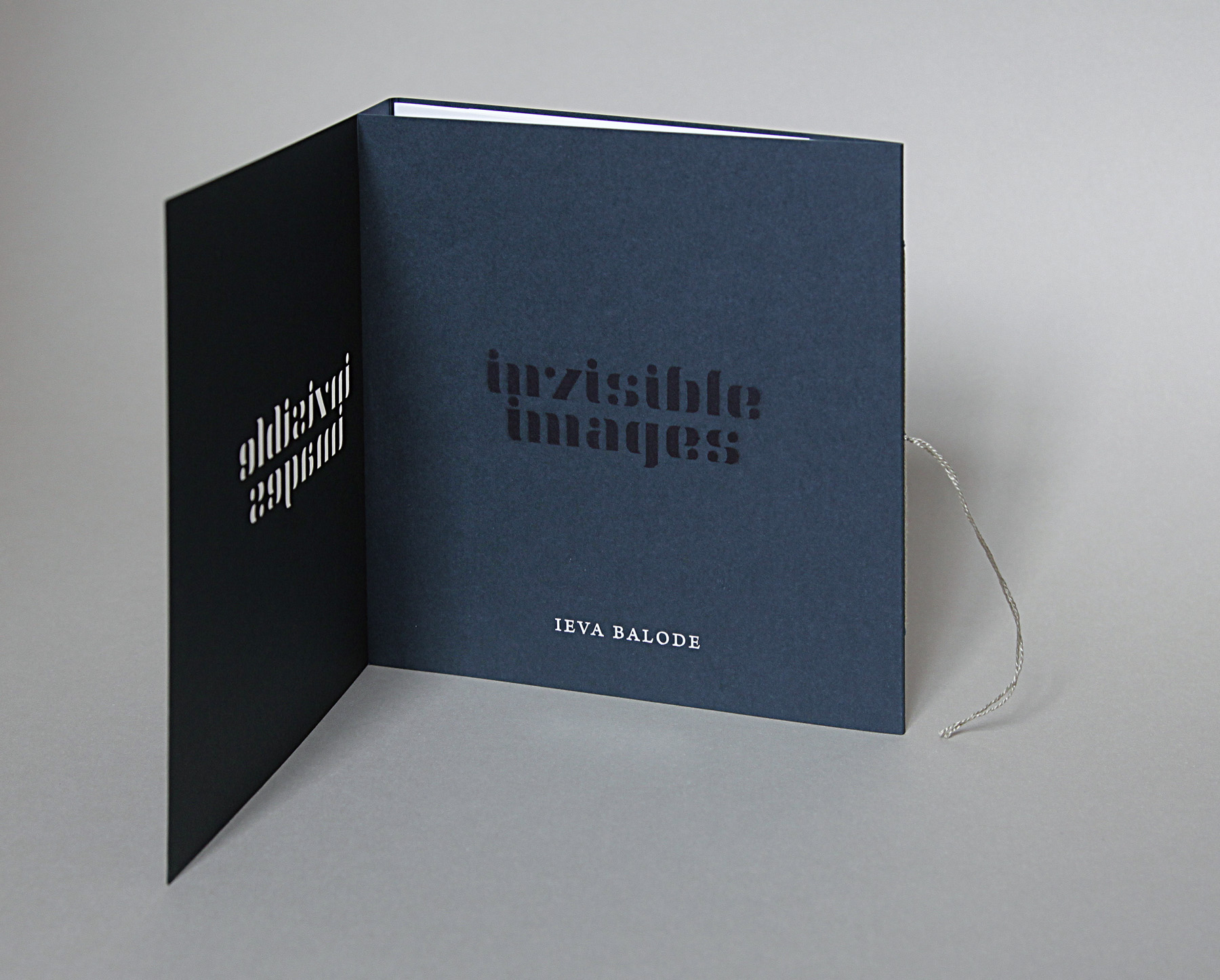 Invisible Images shows works by Latvian artist Ieva Balode. The book was devised by Lithuanian designer Gytis Skudžinskas and published by NoRoutine Books in an edition of 99 + 1 copies (ISBN 978–609–95638–3–1). The book has 32 + 12 leporello pages and measuers 18×18 cm. It was printed offset by Druka on Munken Lynx 115 g and G-Print 130 g, and is distinguished by an experimental binding.