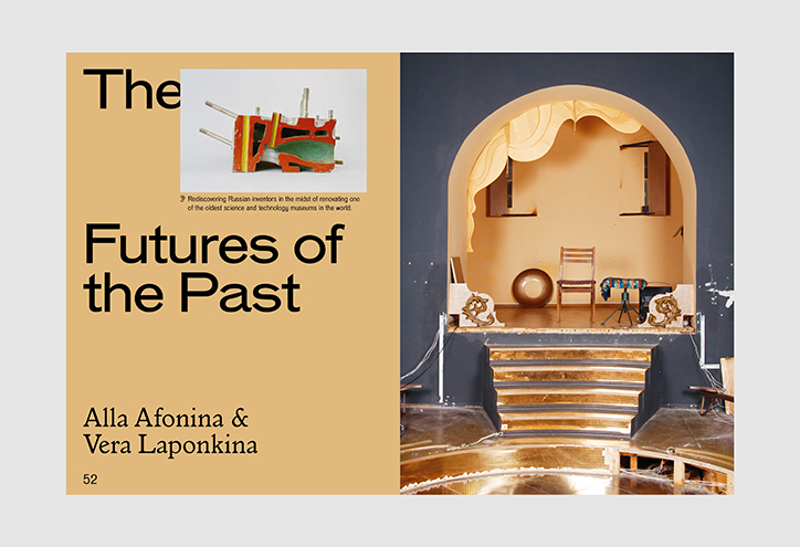 Typographically sparse, the only real settings are title pages, a table of contents and occasional descriptions. The somewhat esoteric feeling of the content is further pronunced with two turn-of-the-century faces — Bauer’s Venus (1907) in regular and extended styles and Monotype’s Italian Old Style (1911). In the logo, the ‘o’ of Venus is replaced by a circle.