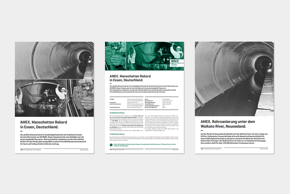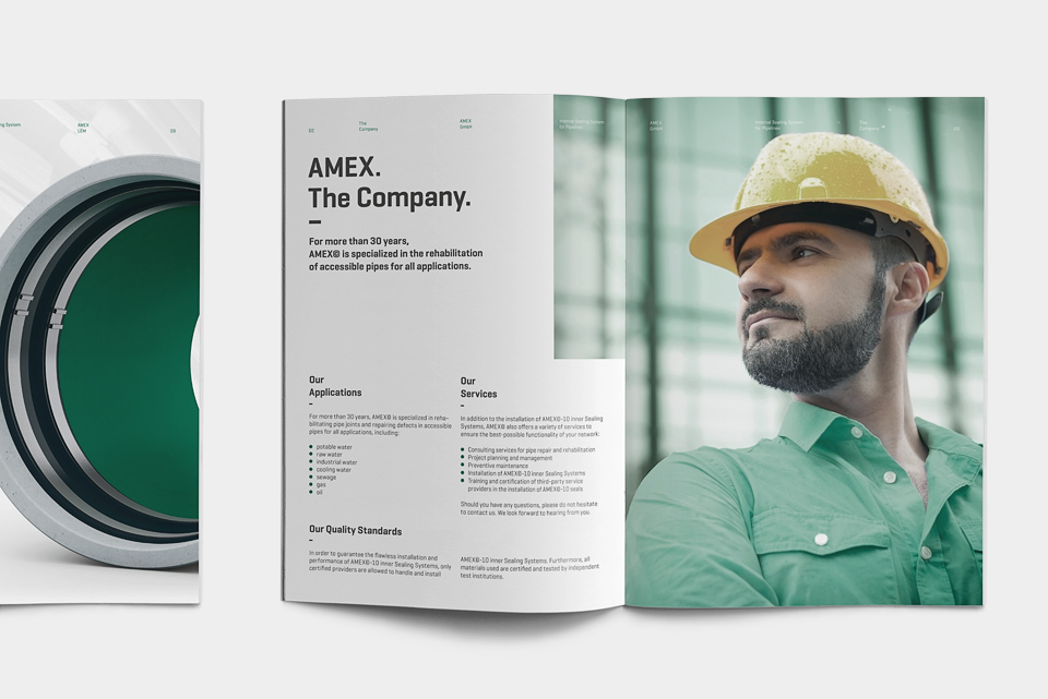 We provide to our customer all existing resources. The quality of our service determines the customer’s level of satisfaction and always corresponds to the highest standards. With the restructuring of the worldwide active civil engineering company AMEX, this company was in need of a new visual appearance.