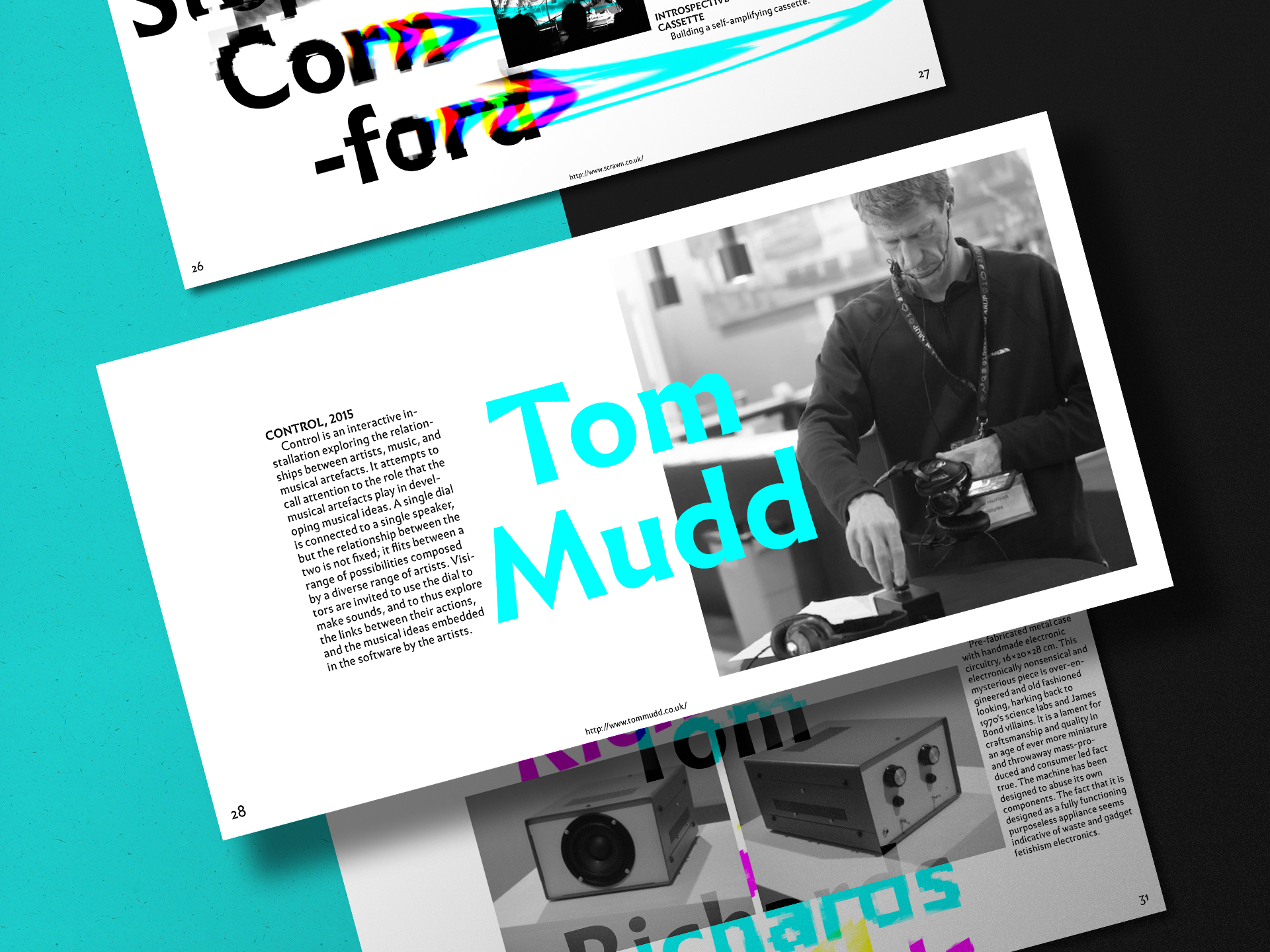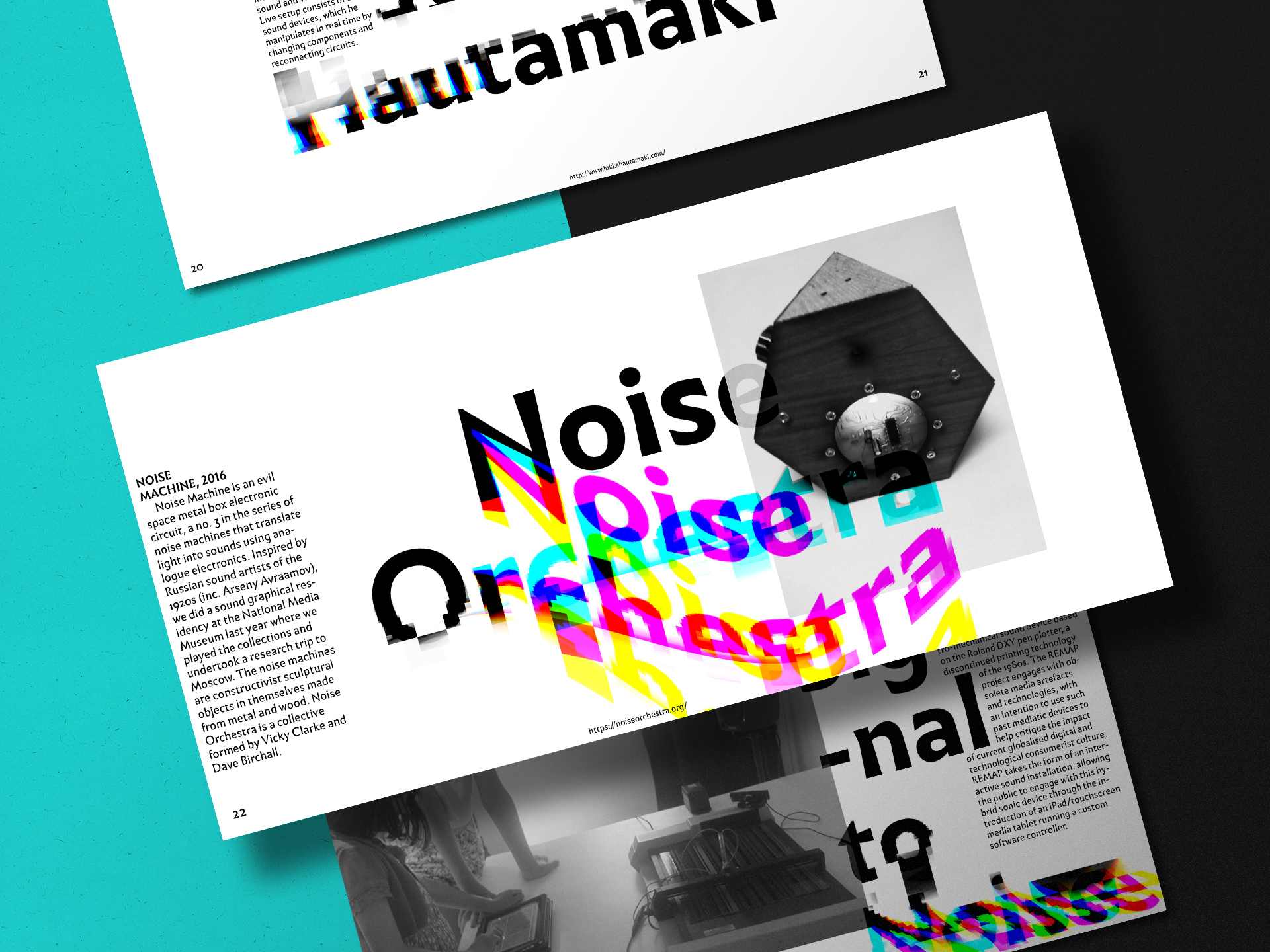 The design follows the same principle and disrupts the black and white with ‘handmade’ RGB glitches.