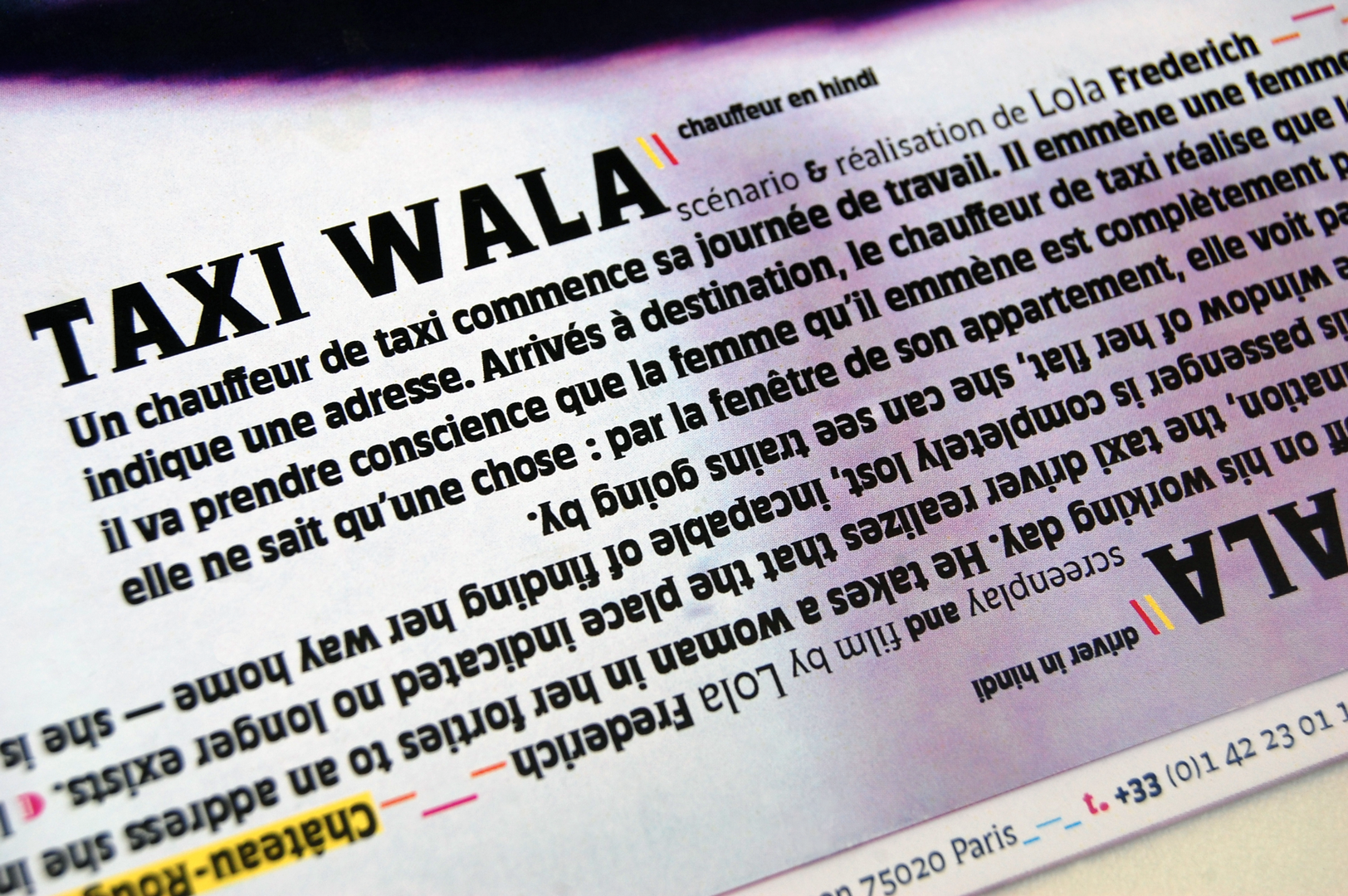 Taxi Wala Contributed by PampaType Team on Apr 6th, 2017. Artwork published in 2008. License: All Rights Reserved. DVD packaging and titling animation designs for the short film Taxi Wala by director Lola Frederich. Designed exclusively with Quimera fonts (Alejandro Lo Celso, PampaType) throughout. License: All Rights Reserved. License: All Rights Reserved. License: All Rights Reserved. License: All Rights Reserved. License: All Rights Reserved. License: All Rights Reserved. License: All Rights Reserved. Typefaces More about QuimeraGet Quimera Formats Packaging (2440) Film/Video (1058) Booklets/Pamphlets (2398) Topics Entertainment (1540) Film/TV (2027) Designers/Agencies Paule Palacios-Dalens (14) Tagged withshort films (72)DVD/Blu-ray Disc covers (65)type in a band (323)movie logos (230)upside-down type (141)multilingual (2634)French (language) (2540)English (language) (2447)Lola Frederich (1)one typeface family (1681)taxis (4) Artwork location France (2843) Paris (1319) In SetsDesigns by Women (Fonts In Use Staff) (3587) Post a comment Name Email – will not be published Website Your response Submit Comment More Quimera in use CLAP! Contemporary Latin American Photobooks2017Ricardo BáezContributed by PampaType Team Staff Pick Prostitution et Société magazine, no. 1622009Paule Palacios-DalensContributed by PampaType Team Eutony course flyer2010Paule Palacios-DalensContributed by PampaType Team Sponsor More in Film/TV Dark City (Director’s Cut) cover2008unknownContributed by Patrick Concannon Hum Bhai & a single Golab Tear (India Skate Tour 2019)2019Robert MarohnContributed by Robert Marohn Dong-hak Peasantry Punk Band movie poster2018Jae EeContributed by Aamina Ganser W magazine vol. 5, September 2019, “Fashion Now”2019Cian BrowneJeff BurchContributed by Production Type Staff Pick More in Film/Video Show Mambembe2016Bárbara AbbêsUlisses AlvesContributed by Bárbara Abbês Staff Pick The G Word with Adam Conover, episode 4, “Lockheed Kills” screen2022A24Fair PointHigher Ground ProductionsContributed by tabmok99 Transit Filmfest 2020c. 2020Complex PleasuresPhilipp DittmarSabrina ZeltnerContributed by Philipp Dittmar Staff Pick Kakkmaddafakka – “Lilac” music video2016Carlín DíazContributed by Maria Doreuli Staff Pick More Fonts In Use Le Livre des Vrai / Faux by Gérard Dhôtel and Benoît Perroud2012l’ImprimanteLoïc BoyerContributed by Florian Hardwig Staff Pick We, the City by Tuba İnal-Çekiç, Urszula Ewa Woźniak (eds.)2023Sylvan LanzContributed by AllCaps Staff Pick sãopaulo Casa & Decoração 20132013Marina ChaccurThea Torlaschi SeverinoContributed by Stephen Coles Staff Pick Land & Living2019Nigel EwanEducationProjects.orgContributed by Nigel Ewan Staff Pick