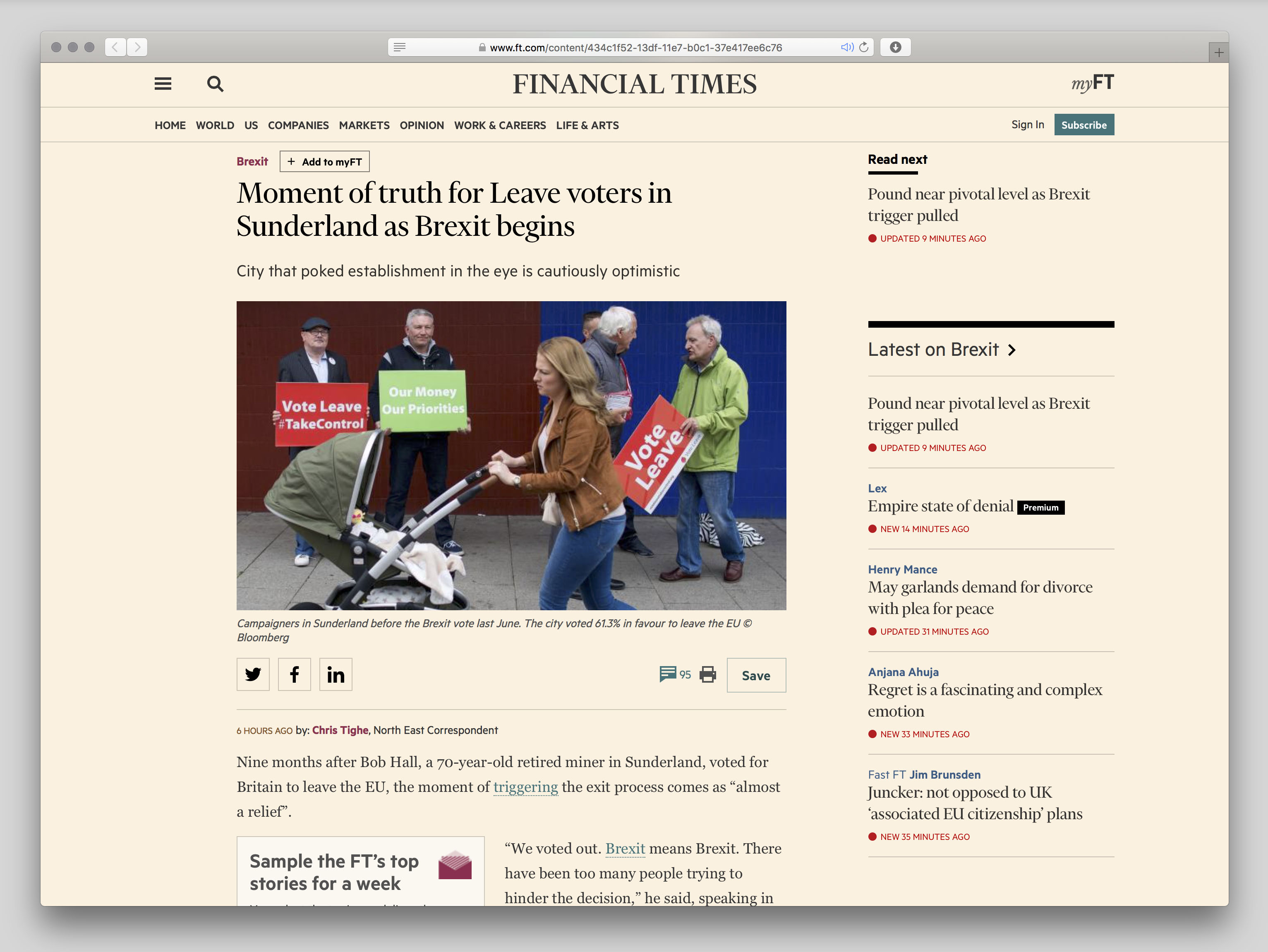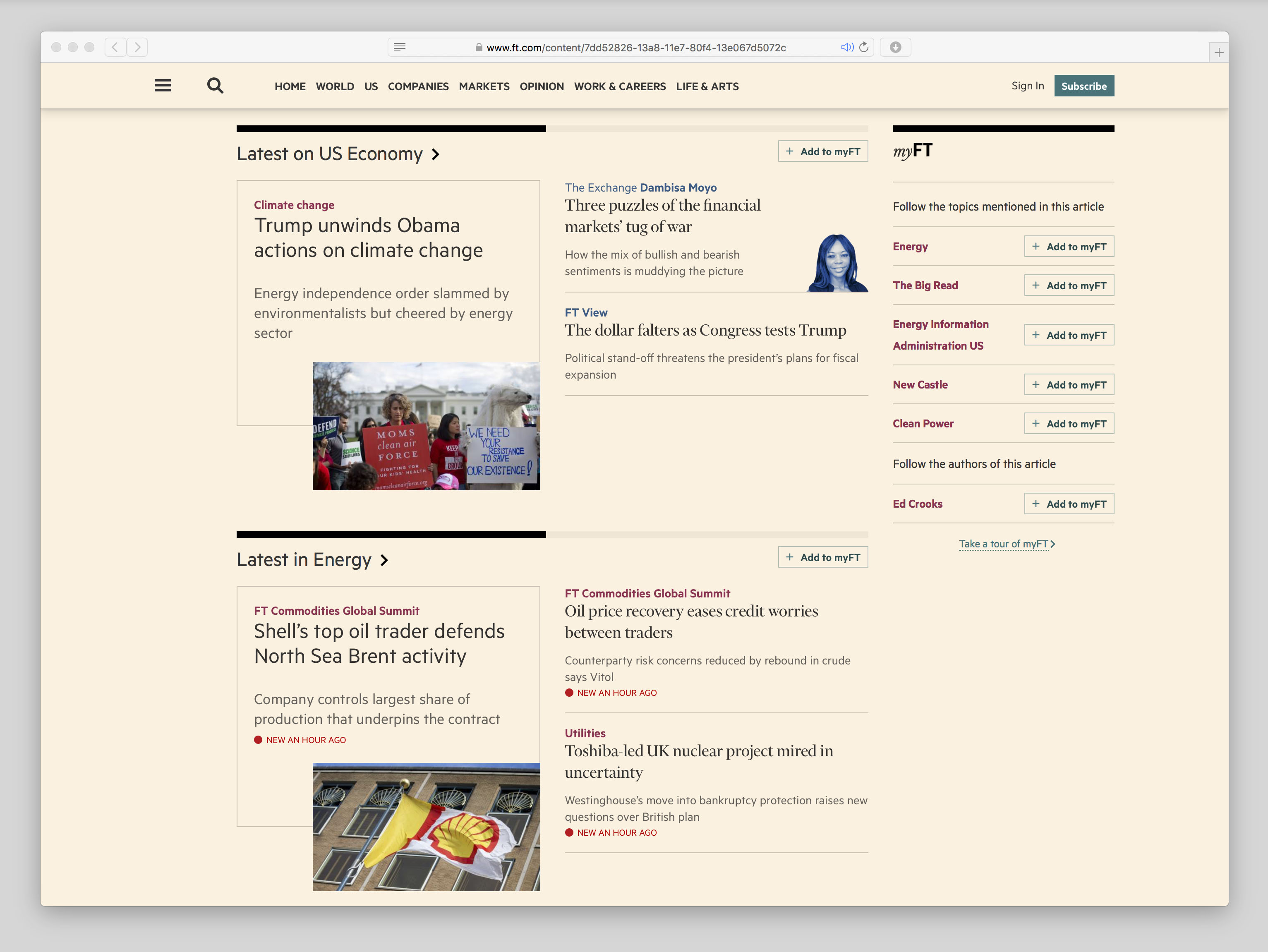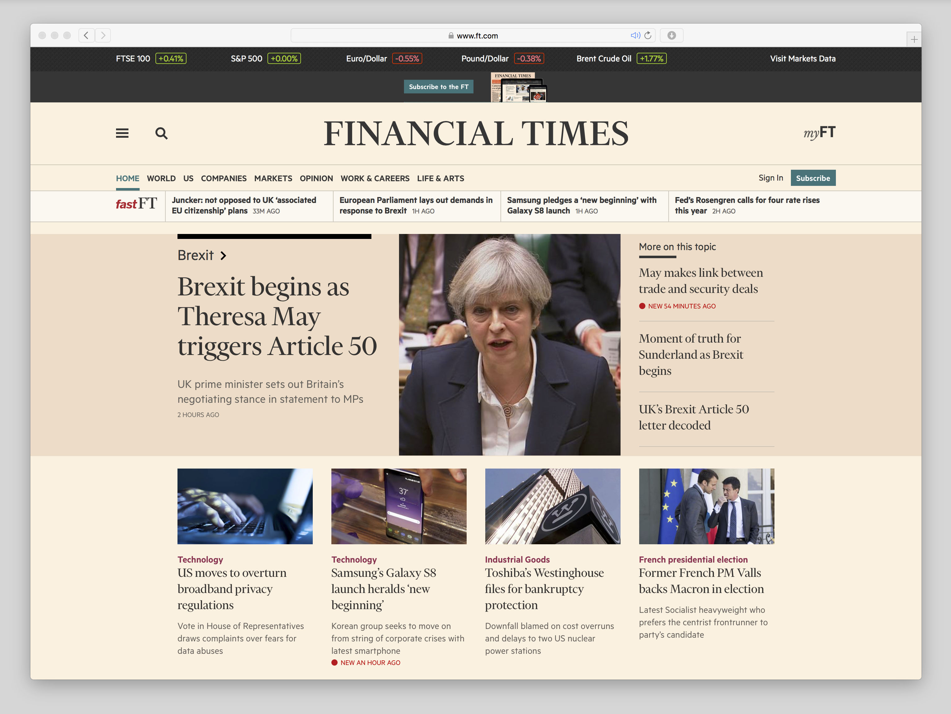 For the FT website, only the Display version of Financier seems to be used — with supposedly has to do with speed optimization. It boasts with being one of the fastest in the world, loading in a mere 1.5 seconds on desktop or 2.1 on mobile. In addition to this, the website lets subscribers (most of the content is behind a pay wall) customize sections and layouts, among other things.