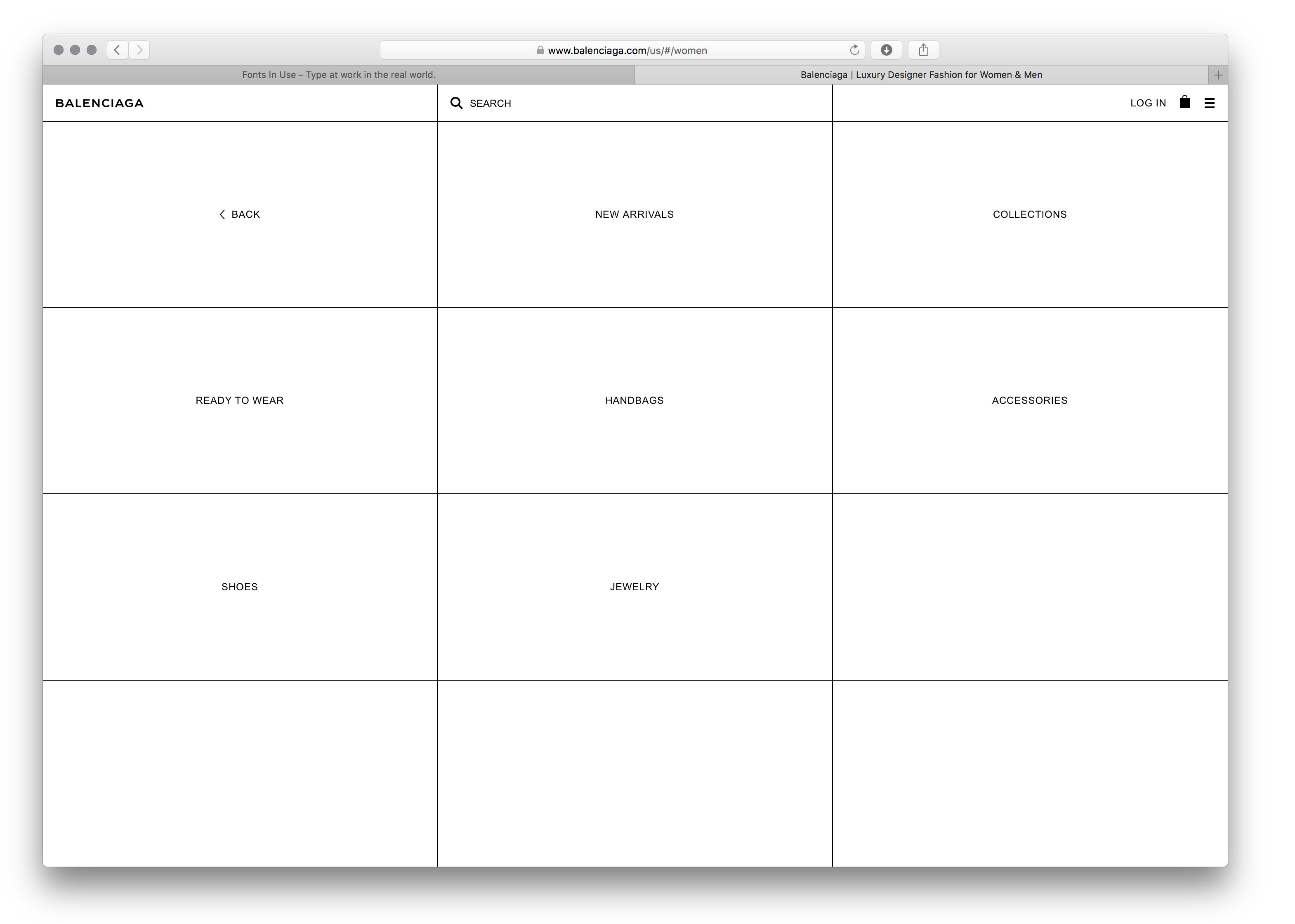 Balenciaga website (2017) Contributed by Love Lagerkvist on Apr 17th, 2017. Artwork published in 2017. Source: www.balenciaga.com License: All Rights Reserved. Bureau Borsche + Demna Gvasalia (+ “norm core aesthetic and mundane brand-abstractions”) = minimalismus Source: www.balenciaga.com License: All Rights Reserved. Source: www.balenciaga.com License: All Rights Reserved. Source: www.balenciaga.com License: All Rights Reserved. Source: www.balenciaga.com License: All Rights Reserved. Source: www.balenciaga.com License: All Rights Reserved. Typefaces More about ArialGet Arial Formats Web (5523) Topics Fashion/Apparel (1524) Retail/Shopping (1092) Designers/Agencies Bureau Mirko Borsche (14) Tagged withminimalist (521)photography (946)trendlisty (118)one typeface, one size (408)Balenciaga (3)responsive (165)online shopping (384)lookbooks (57)lists (300) Artwork location Germany (3798) München (288) In SetsThe Return of Arial (Roque Strew) (4)— System Fonts (Frankie Truong) (17)cool (Karo Konieczna) (871)Arial (Peter Bedford) (7)Arial (jipjam) (17) Post a comment Name Email – will not be published Website Your response Submit Comment More Arial in use SUPERMAG, no. 12013Jim RuggChris PitzerAdhouse BooksContributed by jimrugg Funhouse magazine issue 05, 2018c. 2018Leo FieldContributed by Leo Field Overwatch2016BlizzardContributed by Miguel Sanz Sponsor More in Fashion/Apparel Stutterheim websitethink99Karlsson&LordContributed by Webtype Vanity Fair magazine (2015–)c. 2015Condé NastChris DixonContributed by Feliciano Type Staff Pick Vogue Singapore, issue 17, “Rebirth”2022Michael HarrisonJason ThienContributed by Arthur Schwarz Staff Pick Angela Roi2019A–B–DContributed by Nicole Gallay More in Web Exdatis brandingc. 2022Ligature TypeContributed by Olivia Wood Swiss Confederation Covid-19 information campaign2020unknownContributed by Andreas Kofler Free People website, Spring 20152015Contributed by Michelle B Race Across Skåne 20152015Patch HofweberContributed by Patch Hofweber More Fonts In Use Star Wars logo, prerelease version1976Joe JohnstonContributed by Stephen Coles Staff Pick J.J. Fad – “Supersonic” single cover1988Contributed by Stephen Coles Staff Pick Weibes Wonne und Wert by Jochen Hörisch2015Friedrich ForssmanManja HellpapCornelia FeyllContributed by JAF Staff Pick PAGE magazine (2014–2024)2014PAGEChristine KrawinkelRebecca von HoffContributed by Michael Hochleitner Staff Pick