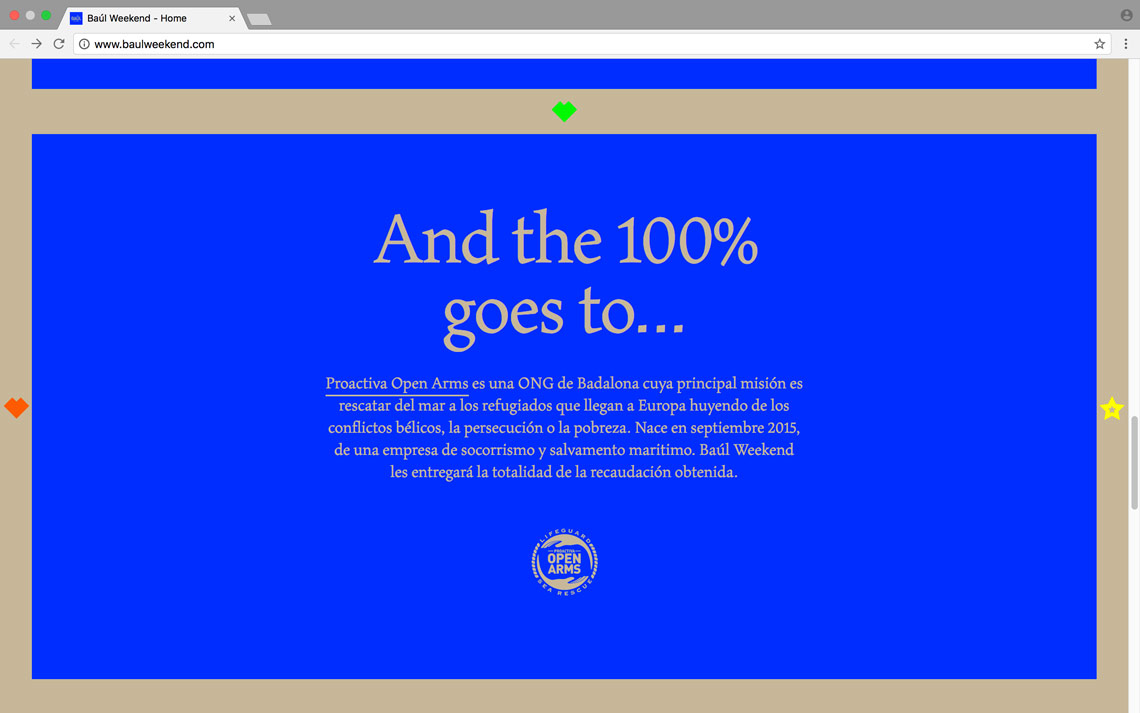 Baúl Weekend is a non-profit project organized in Barcelona with the sole purpose of raising money to collaborate in the horrible humanitarian crisis that we are witnessing today. The project includes selling second hand luxury clothes at reasonable prices and donate them to Proactiva Open Arms, a non-governmental organization from Barcelona (Spain) whose main mission is to rescue refugees from the sea that arrive in Europe fleeing wars, persecution or poverty.