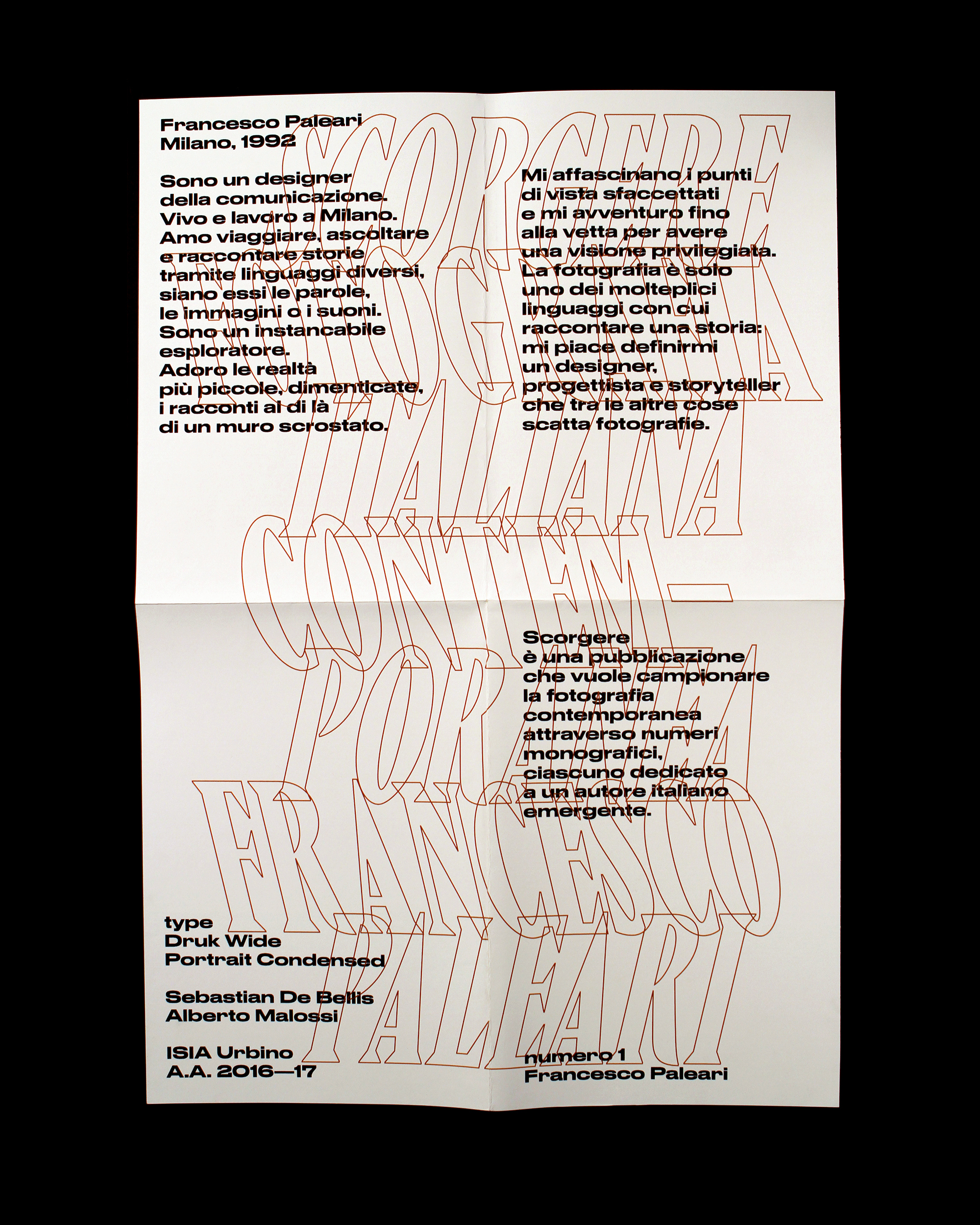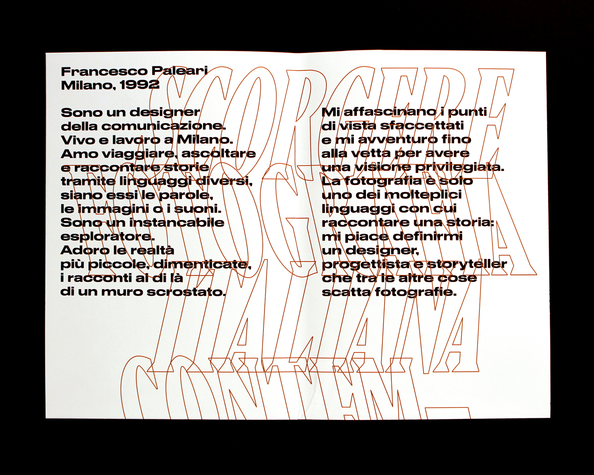 Scorgere is a magazine focused on contemporary Italian photography. Each issue features one artist and one or two of his projects. Issue 1 features Francesco Paleari.