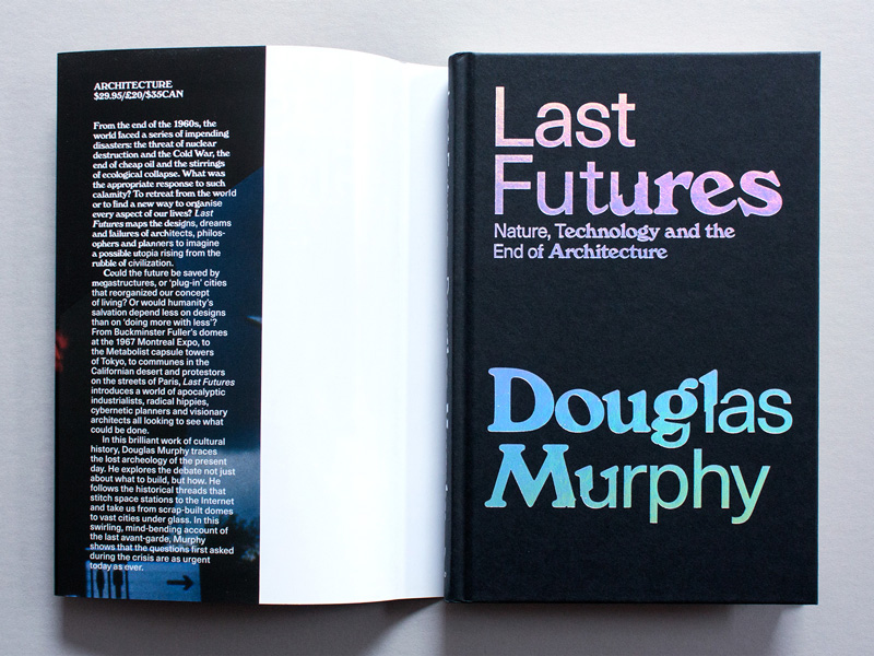 Last Futures investigates radical ideas of utopia from the 1960s and 70s — geodesic domes, moon colonies, the automation of work, all acting as early shots against contemporary crises of ecology, urban planning, and precarity. For the cover, Neil wedged the iconic Whole Earth catalog inside the spectacle of the Montreal Biosphère (Buckminster Fuller’s contribution to the 1967 World Fair) as the latter bursts into flames. Sort of a dark story, really. A cataclysmic cover. Suits the book.