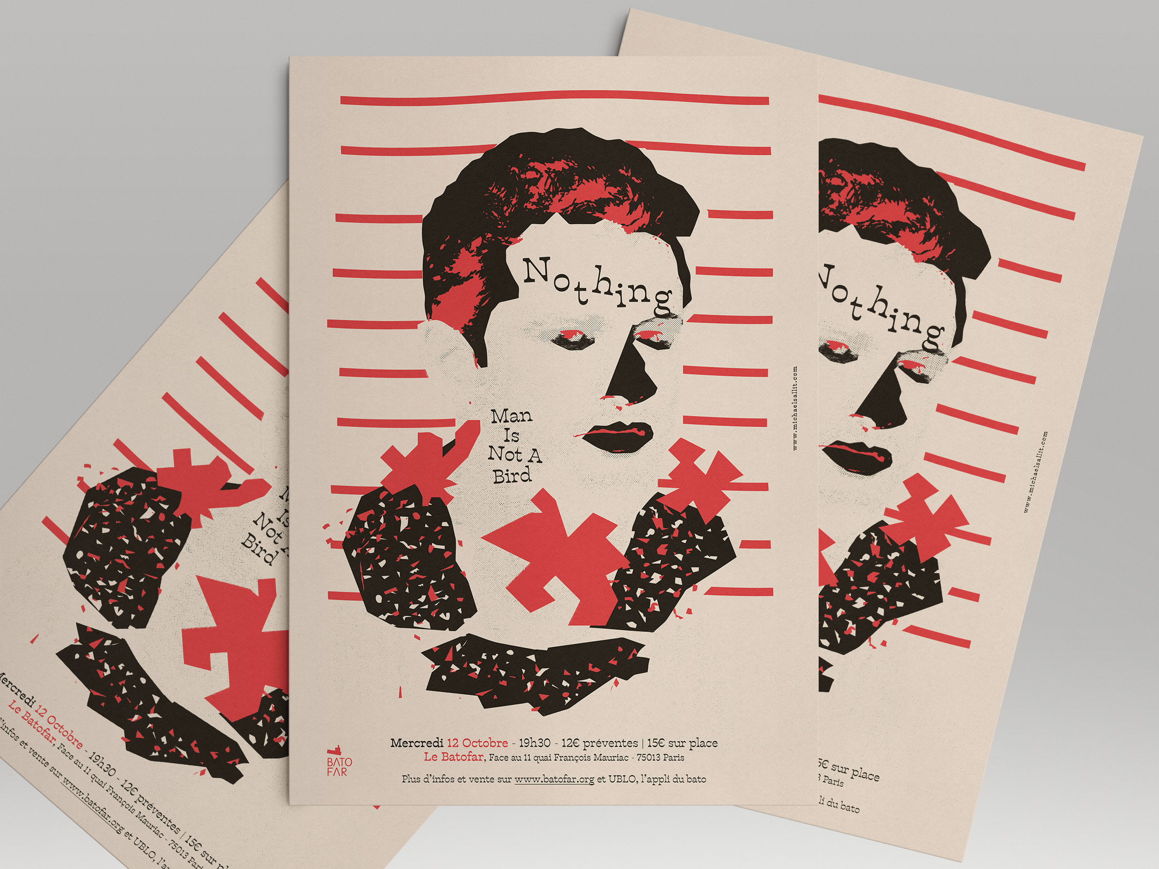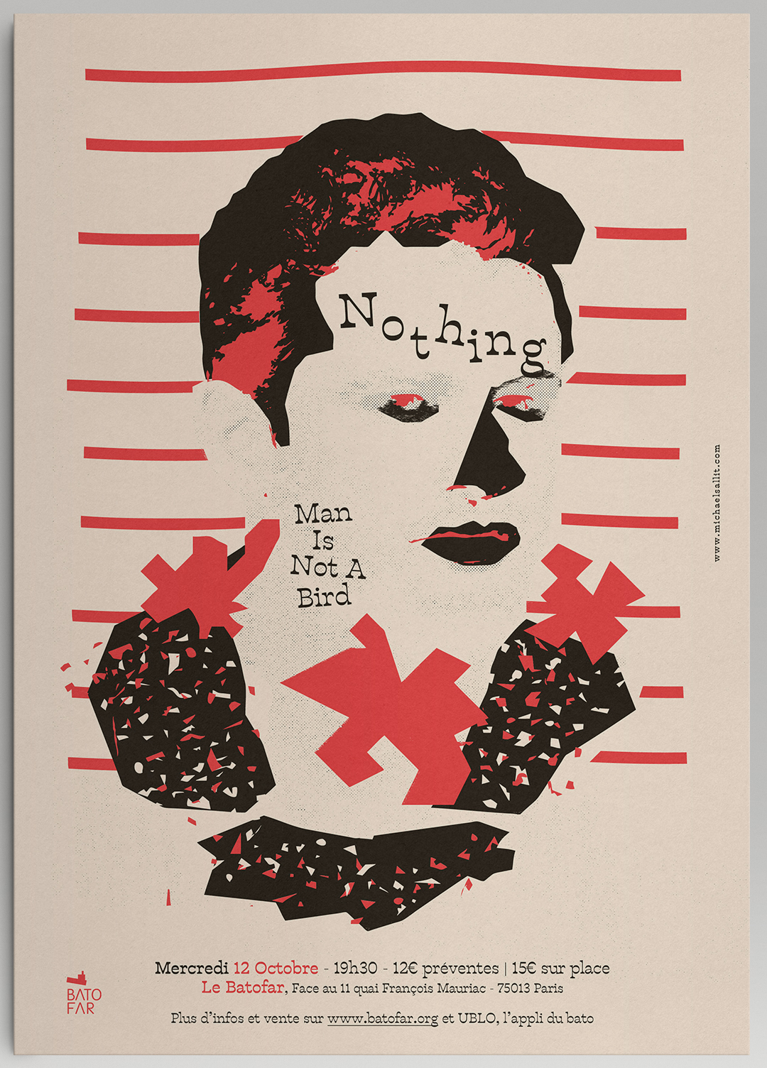 Nothing gig poster Contributed by Michael Sallit on Apr 21st, 2017. Artwork published in October 2016. Source: www.michaelsallit.com Michael Sallit. License: All Rights Reserved. Official gig poster for a show Nothing gave on 12/10/16, at Le Batofar, Paris Source: www.michaelsallit.com Michael Sallit. License: All Rights Reserved. Source: www.michaelsallit.com Michael Sallit. License: All Rights Reserved. Source: www.michaelsallit.com Michael Sallit. License: All Rights Reserved. Typefaces More about BuffonGet Buffon Formats Posters/Flyers (5879) Topics Event (3291) Music (6457) Designers/Agencies Michael Sallit (12) Tagged withconcert & gig posters (525)illustration (1619)red and black (1154)bouncing baseline (409)Nothing (band) (1)scattered type (101) Artwork location France (2912) Paris (1361) In Setsstonewall (Isabelle Jones) (10)stuff i like (Lauren Rose) (22) Post a comment Name Email – will not be published Website Your response Submit Comment More in Music Les Gypsies de Pétion-Ville – Album II Patience album art1973unknownContributed by Florian Hardwig Kodemul – República de los edits. Vol. 1 album art2023Andrés HiguerosContributed by Andrés Higueros David Bowie – Aladdin Sane album art1973Brian DuffyCelia PhiloDuffy Design ConceptsContributed by Jan Middendorp Sponsor More in Posters/Flyers Architectures Utopiques, Visarte2018Chloé PannatierContributed by Chloé Pannatier La Montagne Magique2021MoxsContributed by Jérémy Landes (Studio Triple) Staff Pick They Are Why Ukraine Stands infographic posters2023Víctor OrtizContributed by Víctor Ortiz Maria film poster2017ContemptContributed by Window Seat More Fonts In Use “JOY” holiday card2015Interrobang LetterpressMichael BabcockContributed by Florian Hardwig Staff Pick Sottises 3, “Digital Issue”2017Clément Le Tulle-NeyretContributed by Clément Le Tulle-Neyret Staff Pick Matthew Carter mailing stamps1993Matthew CarterContributed by André Mora Staff Pick Saut Hermès au Grand Palais 20192019PiloteContributed by Stephen Coles Staff Pick Artemsil saltunknownContributed by Alexey Nevsky Staff Pick Monotype advertisement in Offset 7 (1926)1926BauhausContributed by Dan Reynolds Staff Pick Le Mystère des Voix Bulgares (4AD) album art1986Vaughan Oliver23 EnvelopeNigel GriersonContributed by Florian Hardwig Staff Pick Machine-Age Exposition 1927 poster1927unknownContributed by Bryson Stohr Staff Pick