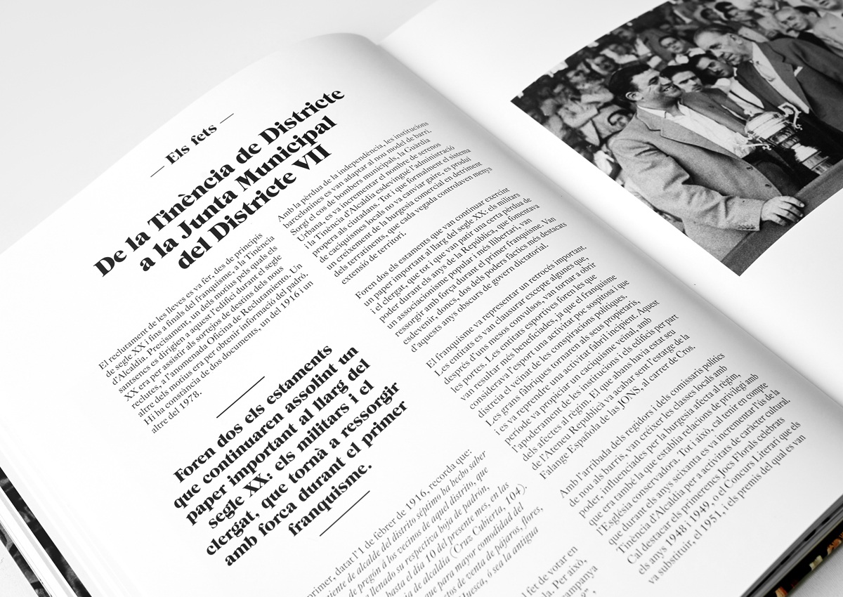 A book to commemorate 100 years of the Sants-Montjuïc townhall in Barcelona. The clean and clear typography was chosen to emphasise the images. A modern version of a classic and historic typeface which, like the building itself, evokes the past while looking to the future.