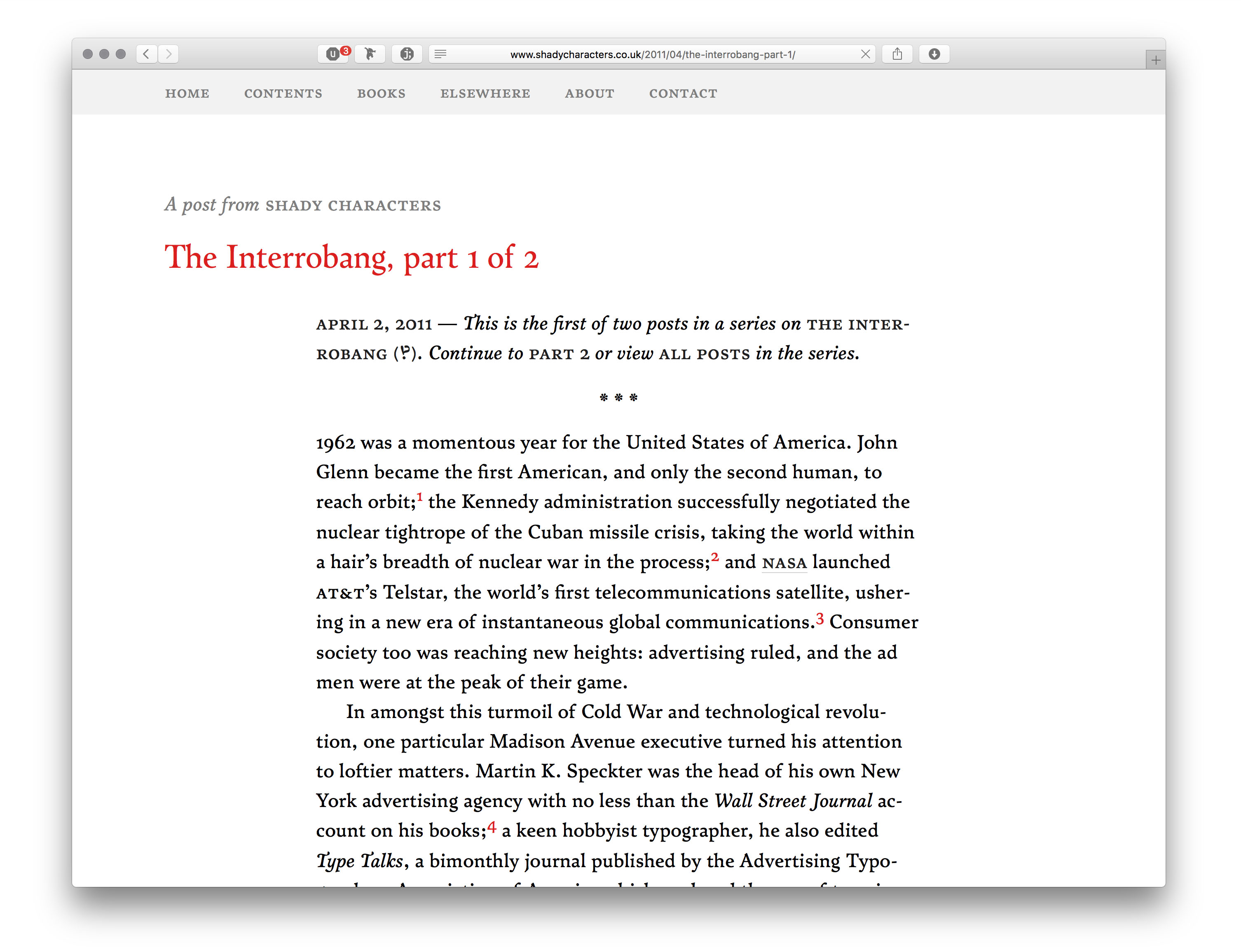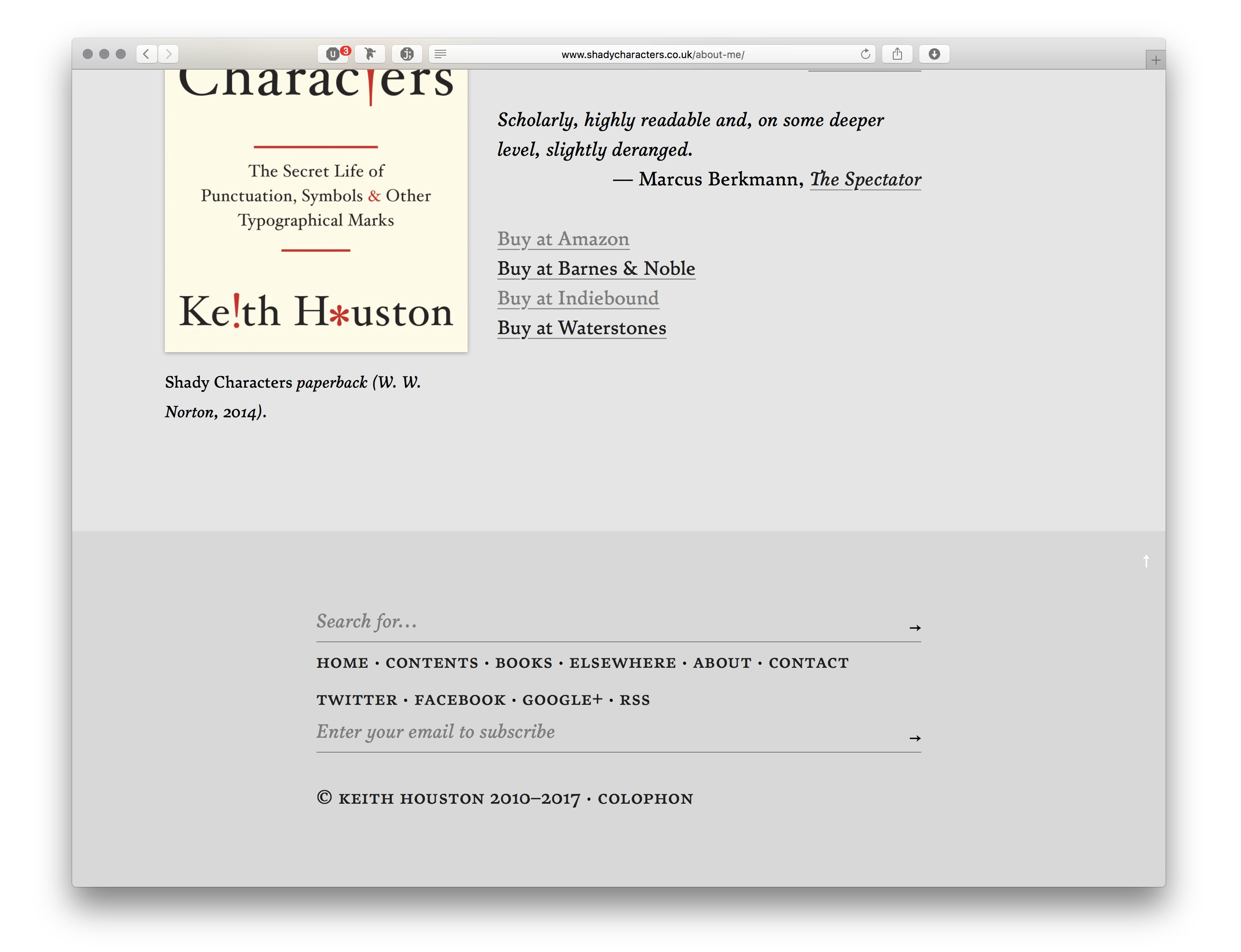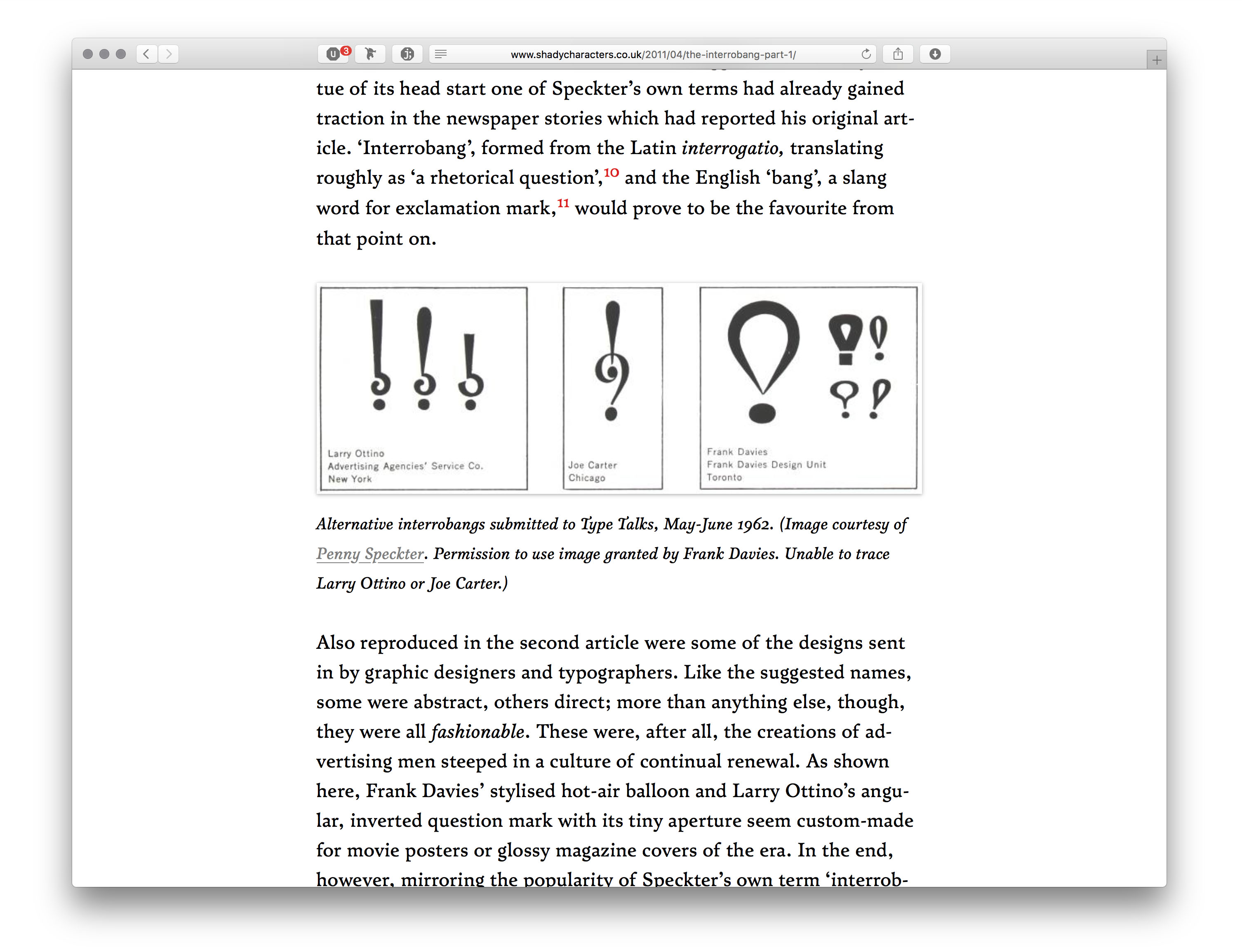 If you’ve ever googled punctuation, chances are rather high that you’ve end up on Keith Houston’s Shady Characters. The excellent blog and subsequent two books dig deep into the use, history and character of our typographic little friends.