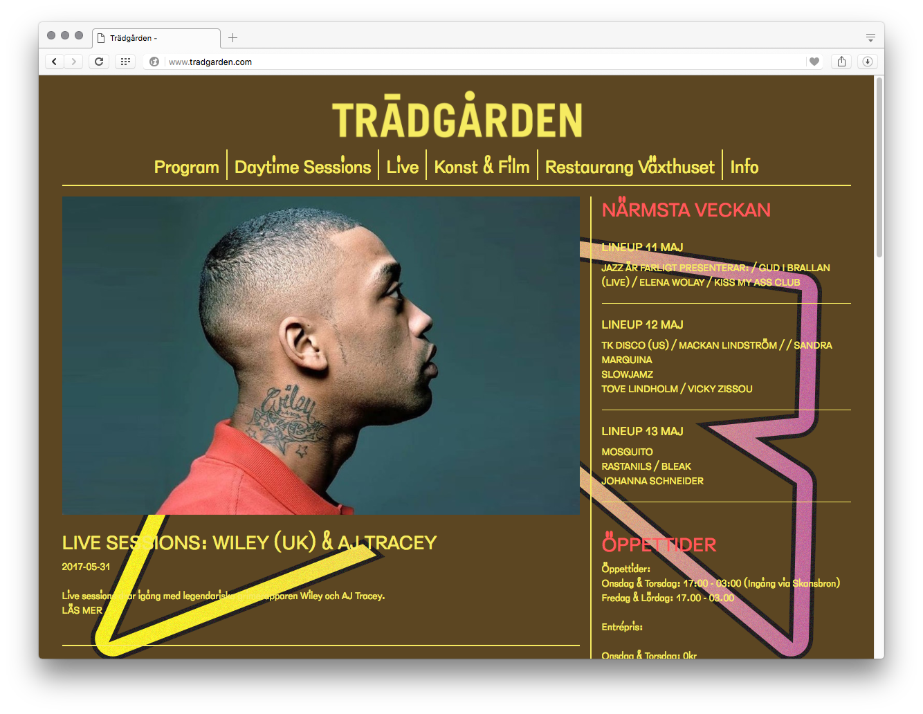 Trädgården website and promotional graphics 2017 Contributed by Love Lagerkvist on May 10th, 2017. Artwork published in 2017. Source: www.facebook.com License: All Rights Reserved. Stockholm’s nightlife institution Trädgården (The Garden) is kickstarting the summer season with a set of fresh graphics using the extreme weights of Benoît Bodhuin’s Elastik. Hopefully this year the vibe will be able to keep up with the graphics. Source: www.facebook.com License: All Rights Reserved. Source: www.facebook.com License: All Rights Reserved. License: All Rights Reserved. The already rather monstrous Karloff Negative Bold in a combination of faux italic and italic on an angle. License: All Rights Reserved. Source: www.tradgarden.com License: All Rights Reserved. Typefaces More about ElastikGet ElastikMore about Karloff NegativeGet Karloff Negative Formats Web (5719) Topics Entertainment (1560) Music (6457) Designers/Agencies Axel Hugmark (3) Rikke Landler (1) Tagged withgradients (850)red (833)shadow effects (1227)reversed type (3464)Trädgården (3)nightlife (67)staircase glyphs (146)Swedish (language) (165)italic/script on an angle (399)diacritics (139)trendlisty (118)faux italic/slanted (247)clubs (98) Artwork location Sweden (451) Stockholm (226) In SetsGradients (Lucas Bevilaqua) (238) Post a comment Name Email – will not be published Website Your response Submit Comment More Elastik in use Island2018Joosung KangContributed by Benoît Bodhuin Staff Pick Skyline Mini Golf2022Studio Elana SchlenkerJordi NgContributed by Benoît Bodhuin Golnar Kat Rahmani and Distaff Studio at UDK Berlin lecture poster2025Hani WibowoContributed by Benoît Bodhuin Staff Pick Sponsor More in Entertainment Listen Up Philip (2014) movie poster2014CHIPSTeddy BlanksAnna Bak-KvapilContributed by Matthijs Sluiter Staff Pick Dead Obies posters2017FeedPhilippe Dionne BussièresContributed by Philippe Dionne Bussières “The red eye” advertisementsc. 1968Contributed by Matthijs Sluiter Cancelled and Rescheduled2011Dafi KühneContributed by Indra Kupferschmid Staff Pick More in Web Esquyerc. 2013DesignPracticeContributed by Stephen Coles Staff Pick Carcel2017KontrapunktContributed by Kontrapunkt Design Mary Universe website2021Mary UniverseContributed by Alain Papazian Thierry François website2022Thierry FrançoisContributed by Jérémy Landes (Studio Triple) More Fonts In Use Andy Bown – Gone To My Head album art1972John YoussiDoug TaylorDesmond StrobelContributed by Florian Hardwig Staff Pick Powerhouse visual identity2023Side By Side StudioContributed by Ivo Gabrowitsch Staff Pick Carhartt “Work In Progress” Retail Storesc. 2013Contributed by Stephen Coles Staff Pick Pli Office2024FakepaperContributed by Fakepaper Staff Pick