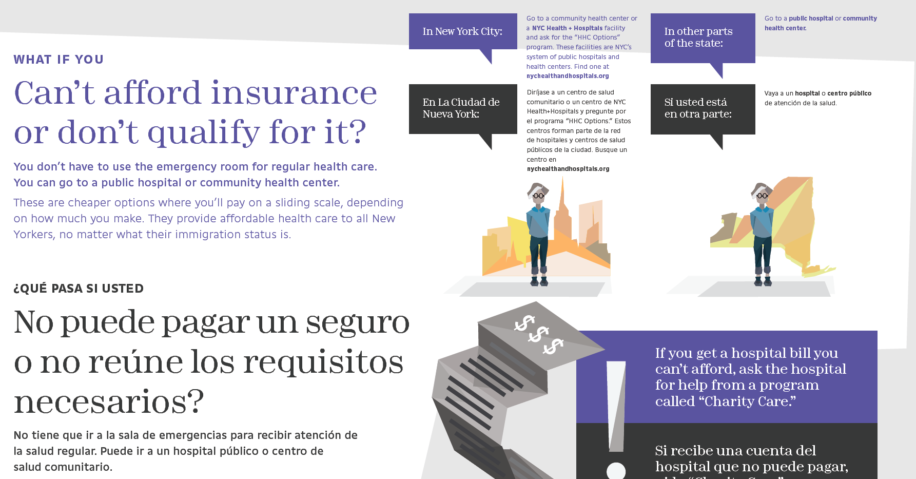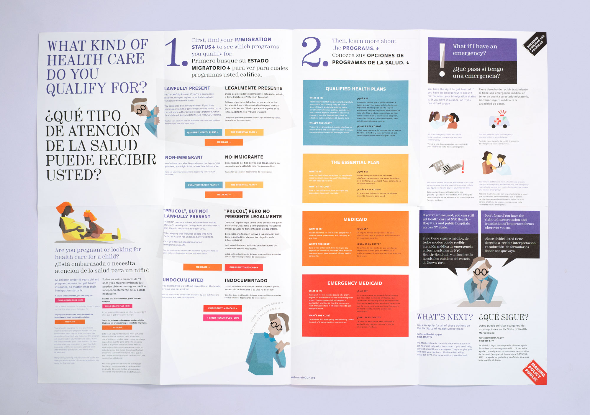 The Center for Urban Pedagogy, illustrator Pratima Mani & design studio Partner & Partners teamed up to design this nice issue of Making Policy Public which features a visual breakdown of programs that help the thousands of immigrants in New York State to keep their health care costs affordable, and lays out their health care rights.