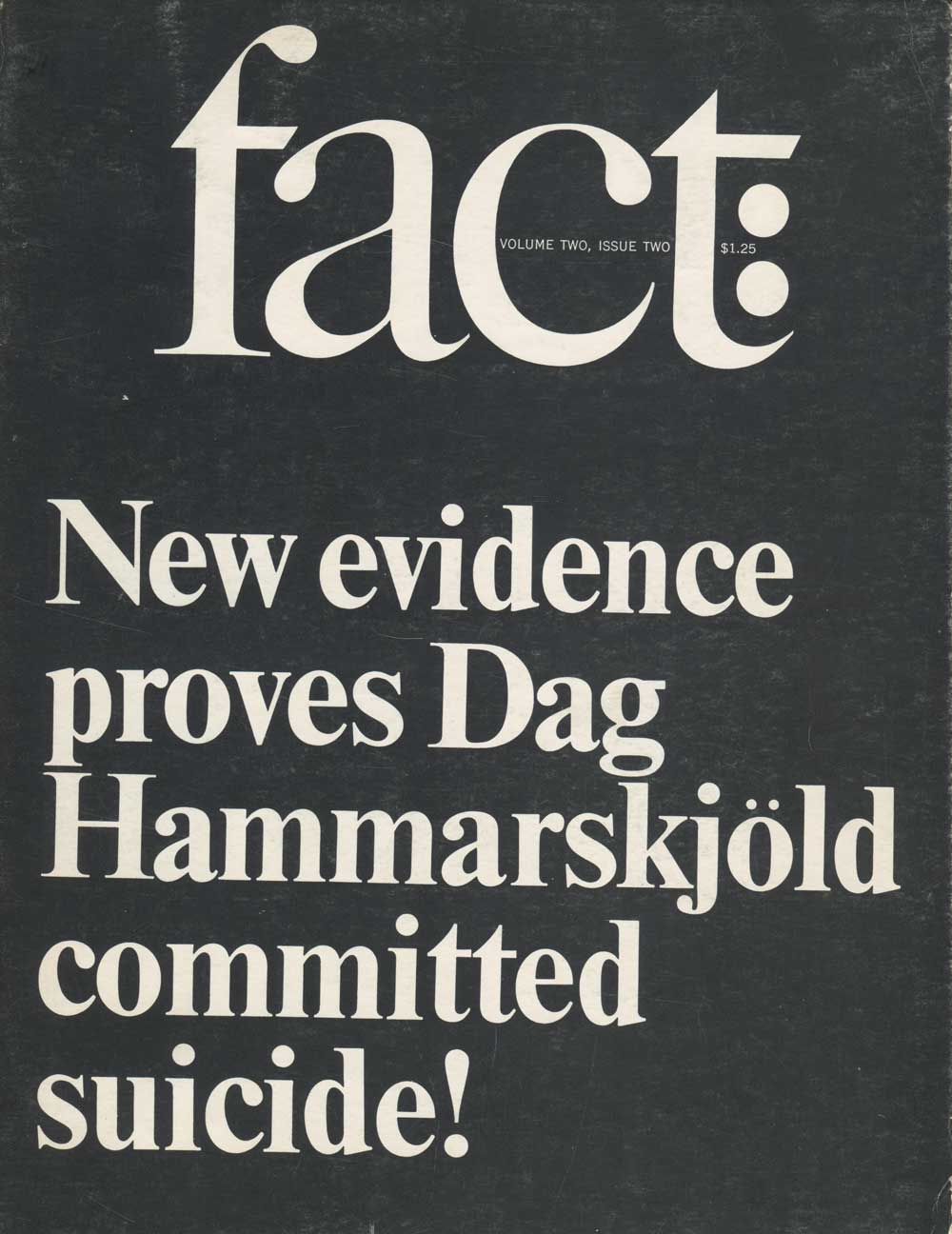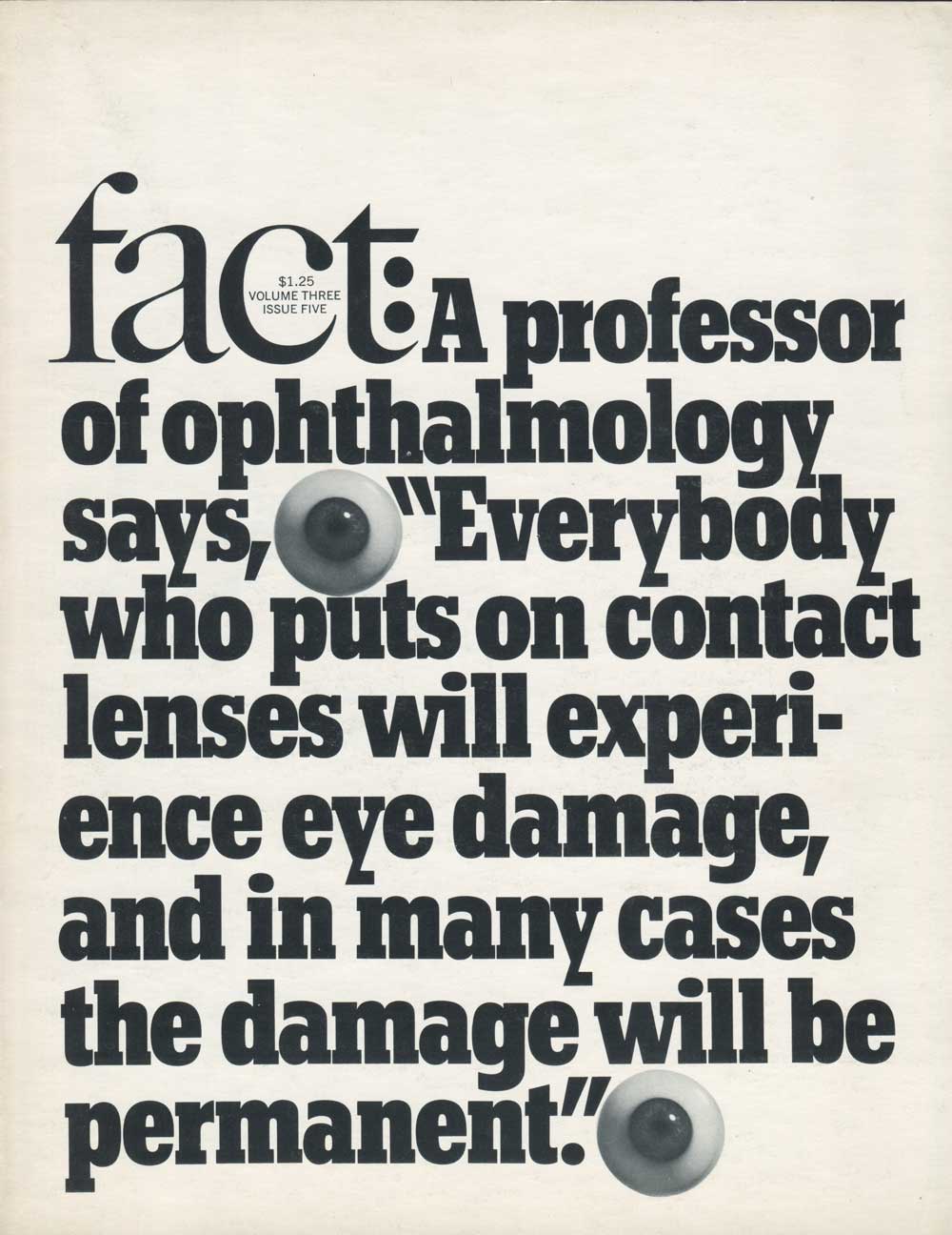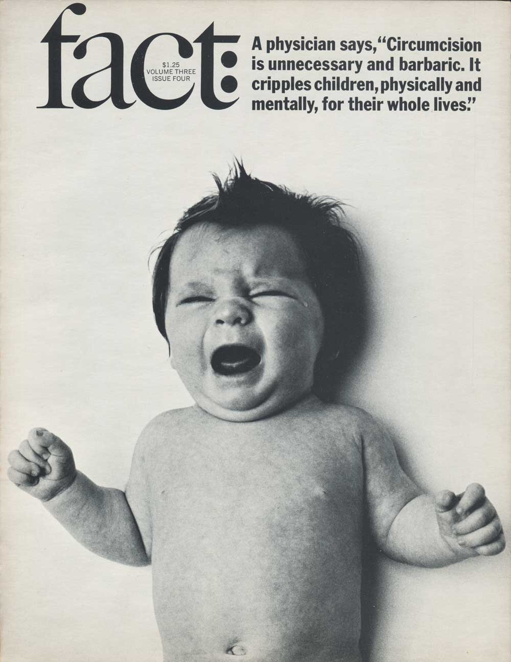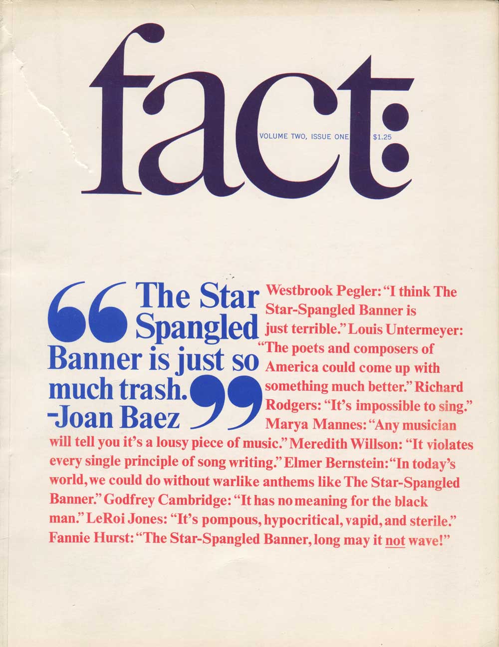 Shortly after being sentenced to jail time for the Eros periodical he started with Herb Lubalin, Ralph Ginzburg launched Fact magazine in 1964, again enlisting Lubalin as art director. Fact focused largely on political issues and was known for its scathingly satirical takedowns of everyone from Bobby Kennedy to Reader’s Digest to the entire American automobile industry (a young Ralph Nader contributed research on that topic). One issue focusing on the mental fitness of conservative presidential candidate Barry Goldwater even led to a lawsuit and eventually the closure of the publication.