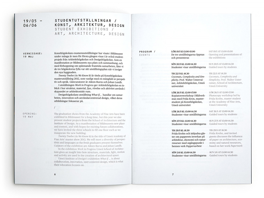 Bildmuseet is Northern Europe’s foremost contemporary art gallery, often praised for their curatorial spirit. As part of a larger urban development in its home town Umeå, the museum relocated to the controversial riverside Arts Campus. With the move also came a new identity, signed Stockholm Design Lab.