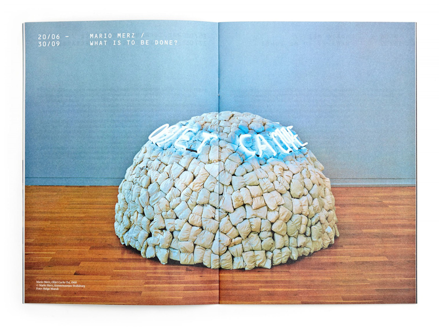 Conceptually, the goal was to create a system easy to replicate and adapt, with the inkjet printer as foremost medium. Frutiger’s OCR-B slots into a grid that creates both uniformity and vivid expression. Publico serves a supporting role as a sturdy workhorse, retaining its character both in small print and on huge walls.
