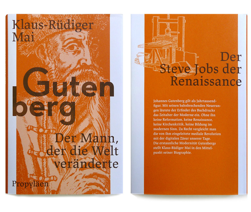 This Gutenberg biography by Klaus-Rüdiger Mai is set beautifully in JAF Lapture, FF Quadraat and Neutraface by Berlin-based typographer Manja Hellpap.