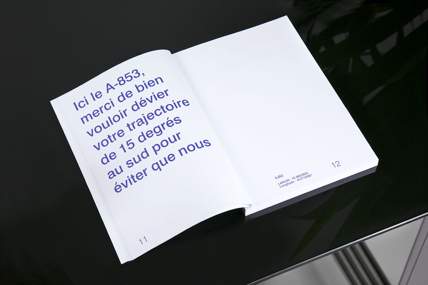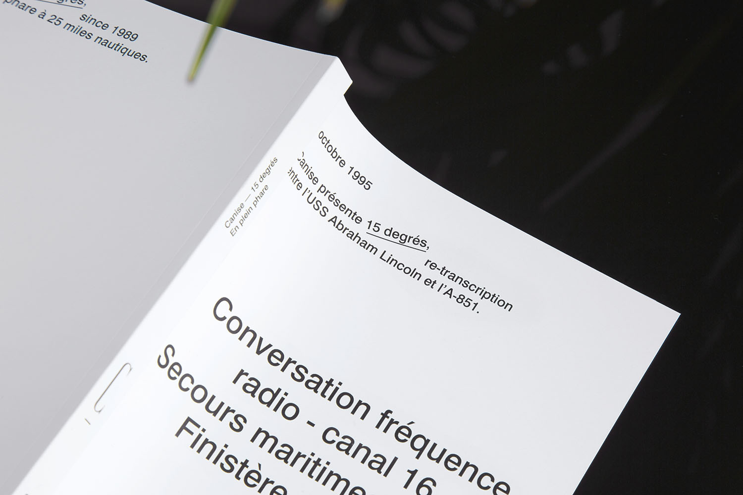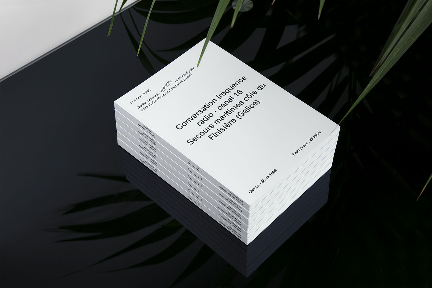Canise was inspired by a popular joke about an encounter between a large naval ship and a lighthouse. The layout of this edition is adapted to its content. Many white pages have been inserted in moments of wait. In strong moments, the comments are illustrated with images. The reader lives through the story as if it was told by a radio presenter, recreating the tones and pauses.