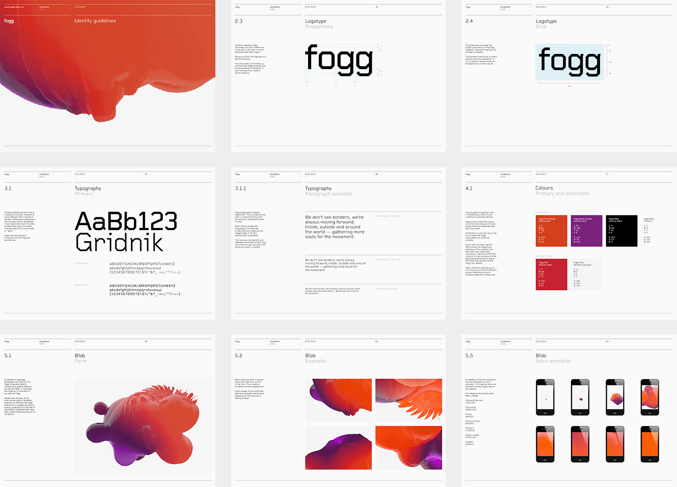 By purchasing overcapacity from international telecom networks, Fogg Mobile provides a fixed cost mobile data traffic service for people who want to avoid unexpected roaming bills when travelling abroad. Through the animate and evolving qualities of computer generated imagery and a combination of unbleached paper, stitching, flat coated colour and silver polypropylene, Fogg’s visual identity, created by Kurppa Hosk and developed by Bunch, delivers an interesting physicality and travel utility to a digital service alongside the more conventional technological cues of recurring geometric typographic form.