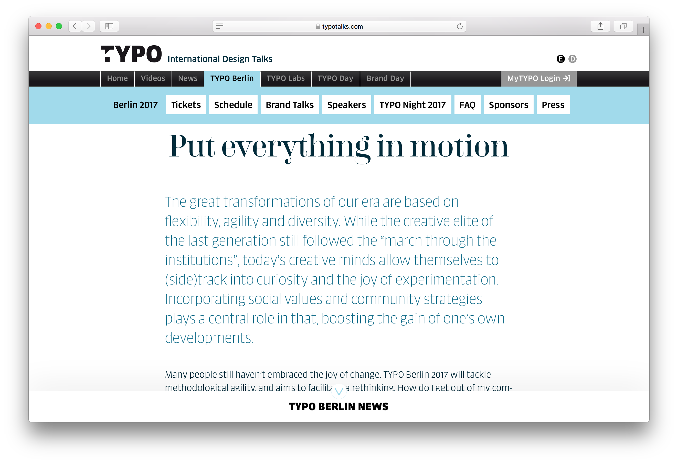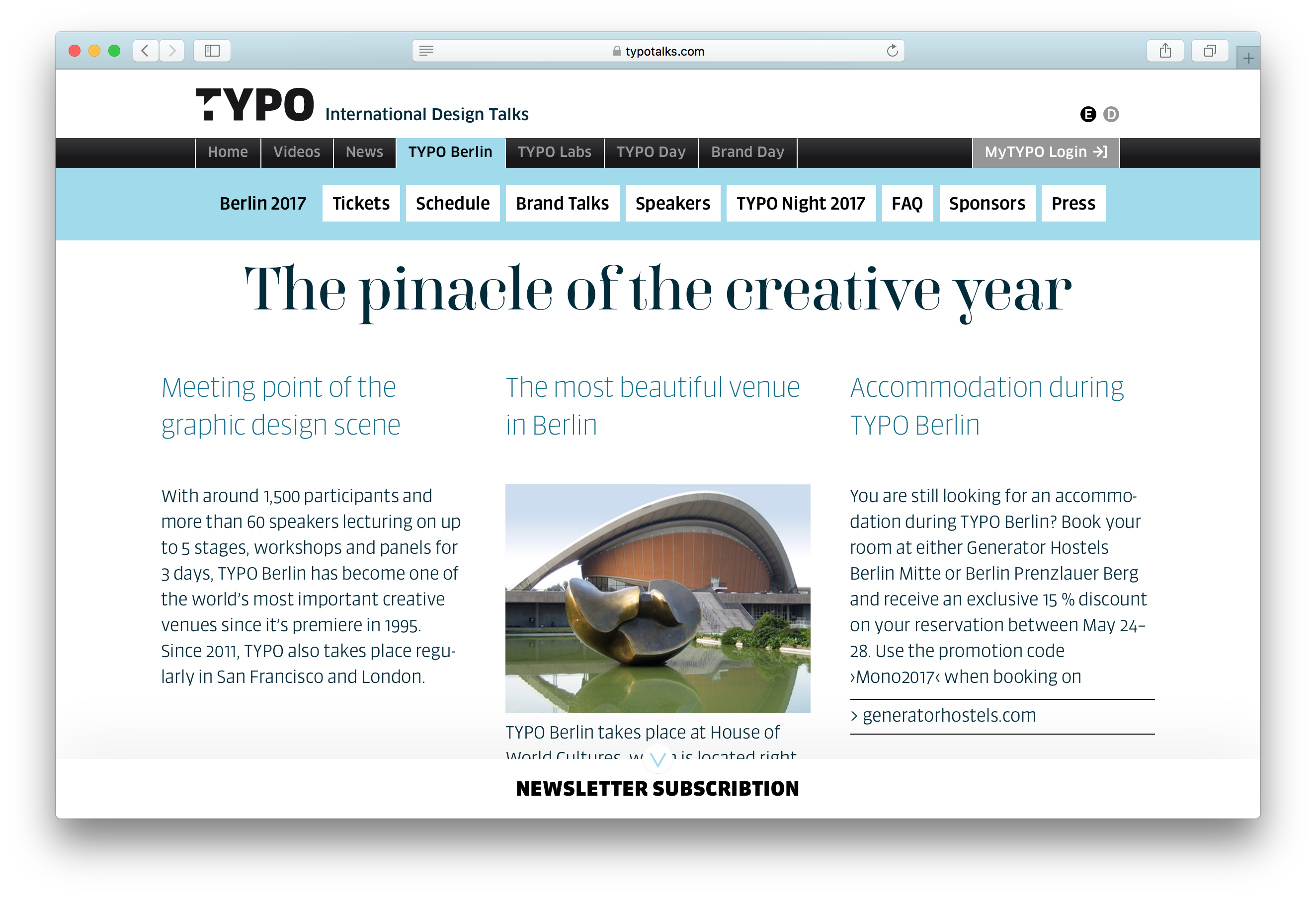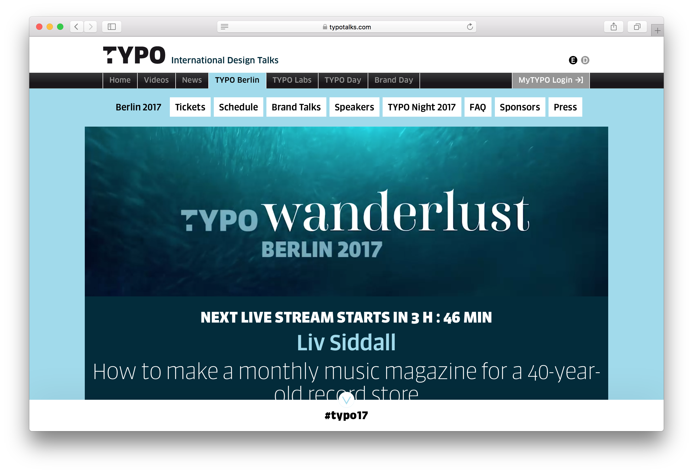 This year (25th–27th May 2017) the theme of TYPO Berlin is “Wanderlust” and, for the twenty-third year running, it takes place at Haus der Kulturen der Welt. Since 2001, Studio Adhoc has designed the conference identity and combines two recent releases from the FontFont Library: FF Carina by Alexandra Korolkova and FF Sanuk Big by Xavier Dupré.
