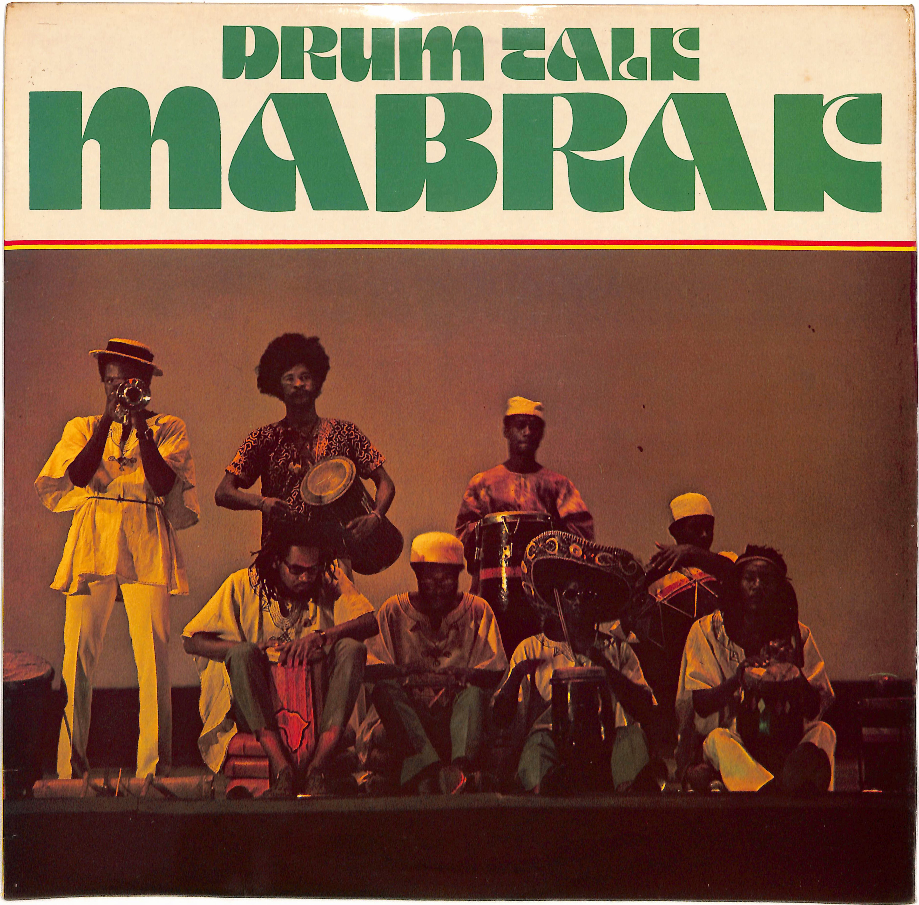 Mabrak was the group founded by drummer Leroy Trevor Mabrak. Leroy Mabrak was originally also a member of the group Count Ossie & the Mystic Revelation of Rastafari whith which he had visited the US in 1972. The group Mabrak was originally named Genesis. In 1974 the drumming section of Mabrak won two of four medals awarded for drumming in the Jamaica National Drum Music Finals. In 1975 they recorded a 45 rpm – at King Tubby’s studio – entitled “Drum Talk” – the single being one of the very first, if not the first, records to feature the talking drum as a lead instrument. The song was chosen to be the theme song for the Prime Ministers of the Commonwealth Conference held at the Pegasus Hotel in Kingston in 1975.
