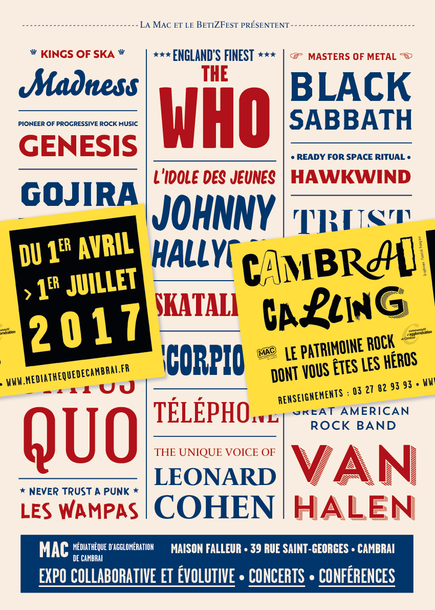 Exhibition on 60 years of rock music in the Cambrésis. Cambrai Calling is a collaborative and evolving project. It appeals to residents to collect elements of the local rock heritage.