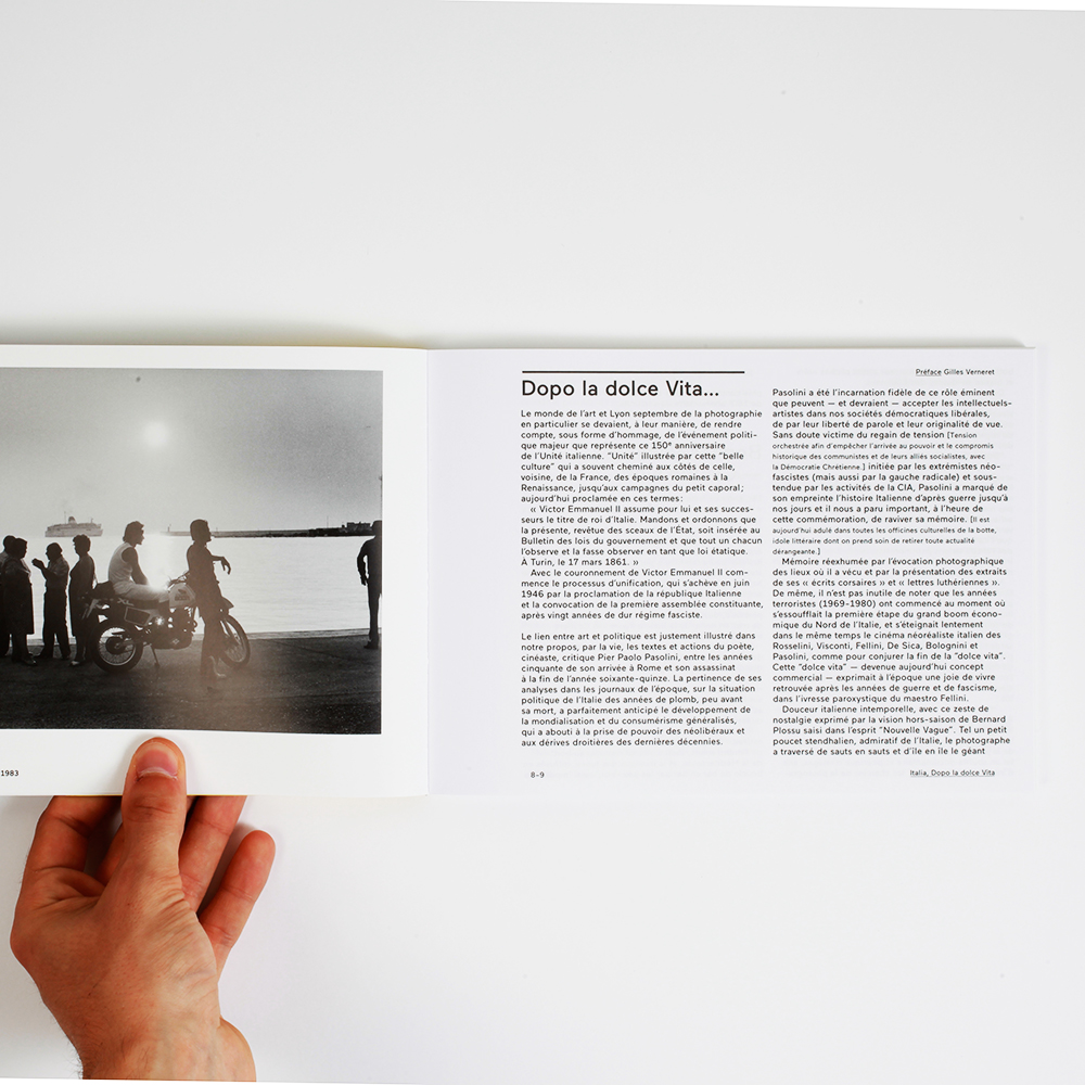 This book presents the work of 5 internationally renowned artists. They tell us about Italy, which they know, which they are discovering. Italy, they have, more than one title. Throughout the pages, the reader discovers the plastic approach of 5 photographs, in black and white or in color. With the images of Claude Nori, we discover Italy from the sixties. Those of Bernard Plossu tell us about his travels on the Aeolian Islands. We discover the history of immigrant workers with the portraits of Marco Delogu. Dan Dubowitz lists the holiday colonies of the fascist era, now abandoned. Gilles Verneret invites us in the footsteps of Pasolini by photographing places where there is a lived experience, worked where you are the inspiration.