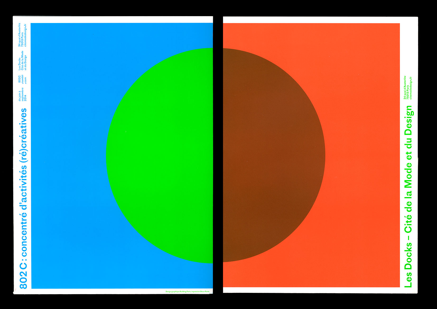 802 C Festival Contributed by Production Type on Jun 10th, 2017. Artwork published in June 2014. Source: www.buildingparis.fr License: All Rights Reserved. Graphic design studio Building Paris conceived graphics for the first edition of 802 C festival using just circles, ultra-vivid tones and a single weight of Proto Grotesk. Words are screen printed in a translucent varnish on top of the shapes. Source: www.buildingparis.fr License: All Rights Reserved. Source: www.buildingparis.fr License: All Rights Reserved. Source: www.buildingparis.fr License: All Rights Reserved. Source: www.buildingparis.fr License: All Rights Reserved. Source: www.buildingparis.fr License: All Rights Reserved. Source: www.buildingparis.fr License: All Rights Reserved. Source: www.buildingparis.fr License: All Rights Reserved. Source: www.buildingparis.fr License: All Rights Reserved. Source: www.buildingparis.fr License: All Rights Reserved. Source: www.buildingparis.fr License: All Rights Reserved. Typefaces More about Proto GroteskGet Proto Grotesk Formats Branding/Identity (8625) Posters/Flyers (5881) Topics Event (3293) Graphic Design (3047) Designers/Agencies Building Paris (23) Tagged withCité de la Mode et du Design (1)neon/fluorescent/phosphorescent colors (228)circles (168)screen printed (353)early uses (2288)orange blue and green (1)geometric (129)type on an angle (1364)one typeface (1769)vibrating color combos (75) Artwork location France (2915) Paris (1362) In SetsProduction Type (Production Type) (494) Post a comment Name Email – will not be published Website Your response Submit Comment More Proto Grotesk in use Beirut Re-Store2020Antoine RouxContributed by Production Type HEADS. debut album2015Manuel Weselymm, mContributed by Production Type Staff Pick Grain Traders restaurant2015Mark De WinneParable StudioContributed by Production Type Staff Pick Sponsor More in Graphic Design U&lc, Vol. 1 #2, 19741974Herb LubalinContributed by Stéphane Darricau Staff Pick “Our Mr. Hilton is on the way.” postcard1897Contributed by Fonts In Use Staff Disappointments Diary 20122012Asbury & AsburyContributed by Chris Purcell Print is Dead is Dead.2018Vicky ChauContributed by Vicky Chau More in Branding/Identity Modrá púpava2018Ivana PalečkováContributed by Ivana Palečková Staff Pick HiperDino, Las Palmasc. 2011Photo(s) by Nina Stössinger on Flickr. Cartoon Network2022Gimmick StudioContributed by TypeType Verdant Brewing Co.2014Jake GiltsoffContributed by Jake Giltsoff More Fonts In Use Du couvent au bordel, La Table Ronde2017CheeriContributed by Margaux Saulou Staff Pick New York City Opera (2009–2013)c. 20082x4incContributed by Labor & Wait Staff Pick Alfred Hitchcock – Ghost Stories for Young Peoplealbum art1962unknownContributed by Patrick Concannon Staff Pick Pennington Deckel Edge(Sample unavailable) Bella triste, No. 652023Elfi Handina MuranduVivien SorrentinoContributed by CLAUDE TYPE Staff Pick