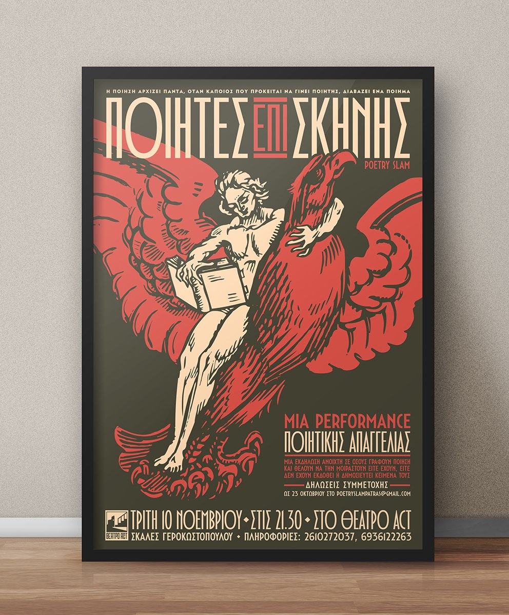 Poetry on stage, Act Theatre Patras Contributed by George Triantafyllakos on Jun 11th, 2017. Artwork published in 2015. License: All Rights Reserved. Poster for the “Ποιητές επί σκηνής” (Poetry on stage) performance at Act Theatre Patras Typefaces More about Cornelius (Atypical)Get Cornelius (Atypical) Formats Posters/Flyers (5698) Topics Performing Arts (982) Designers/Agencies Dimis Giannakoulias (2) Studio Ampersand (1) Tagged withposters (1399)poetry (388)poetry slam (1)red and black (1131)all caps (7508)Greek (language/script) (86)Act Theatre (1) Artwork location Greece (154) Pátra (1) In SetsAtypical Type Foundry (George Triantafyllakos) (6) Post a comment Name Email – will not be published Website Your response Submit Comment More in Performing Arts The Mick Lally Theatrec. 2013Bite! AssociatesContributed by Stephen Coles Oh! Calcutta! paperback1969Stephanie TevonianContributed by henry cruickshank Staff Pick Calcaterra website2019ET StudioTommaso AlgozzinoTomas BaruffaldiContributed by Tomas Baruffaldi Sponsor More in Posters/Flyers Hello, Dolly! (1969) movie poster1969unknownContributed by Florian Hardwig Staff Pick Neue Erschöpfungsgeschichten2024Daniel ZenkerContributed by Studio Laucke Siebein Staff Pick Radical Utopias poster seriesc. 2020Philipp DittmarContributed by Philipp Dittmar Akutní případ (1975) Czechoslovak movie poster1977Eliška KonopiskáContributed by Florian Hardwig More Fonts In Use Southwest: The Magazine2016Kevin de MirandaDavid W. RadabaughContributed by Tomas Brousil Staff Pick Woolworths Essentials2015Frost*Marque BrandingContributed by Matthijs Sluiter Staff Pick Météorites. Entre ciel et terre2017Fanette MellierContributed by 205TF Staff Pick Al Wilson – “Show and Tell” / “Listen to Me” single cover1973unknownPhoto(s) by oopswhoops on Flickr. Staff Pick Pirates and Farmers by Dave Hickey (Ridinghouse)2013Mark ThomsonContributed by Florian Hardwig Staff Pick Ateliers arts graphiques & femmage leaflet2024Anna GuignardContributed by WrittenShape Type Foundry Staff Pick Opak magazinec. 2009Adeline MollardFloyd E. SchulzeContributed by Swiss Typefaces Staff Pick GAMA Edition by Odeonc. 1980Jiří RathouskýContributed by Briefcase Type Foundry Staff Pick