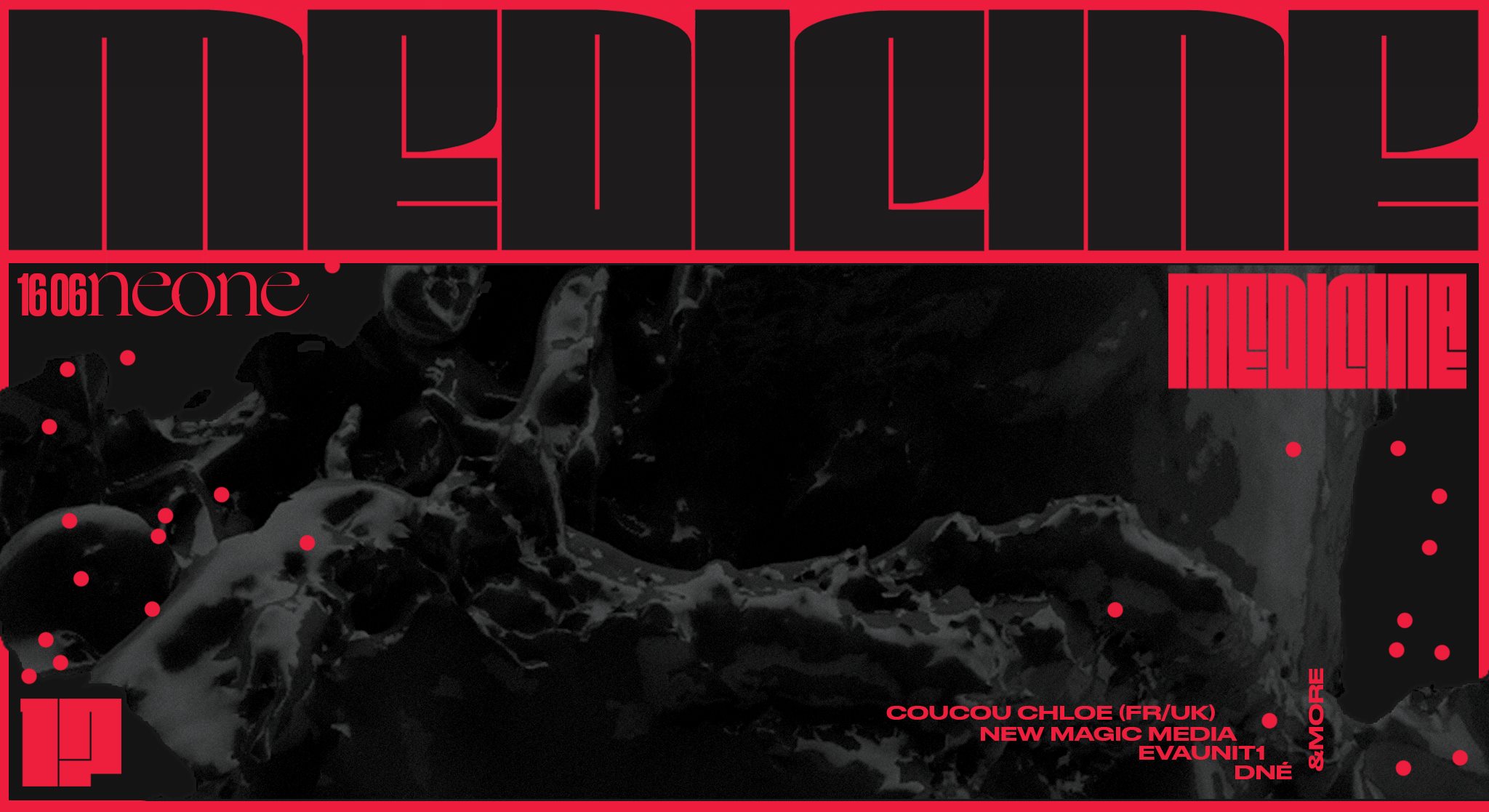 Medicine no.17 takes place tonight at Neone, Prague, featuring Coucou Chloe (FR/UK), New Magic Media, Evaunit1, Yeseter, Dné and FK.